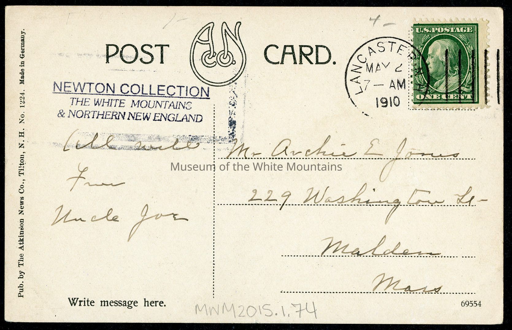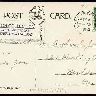 Back Description: An address, date and short note are written on the back. The date is May 2, 1910