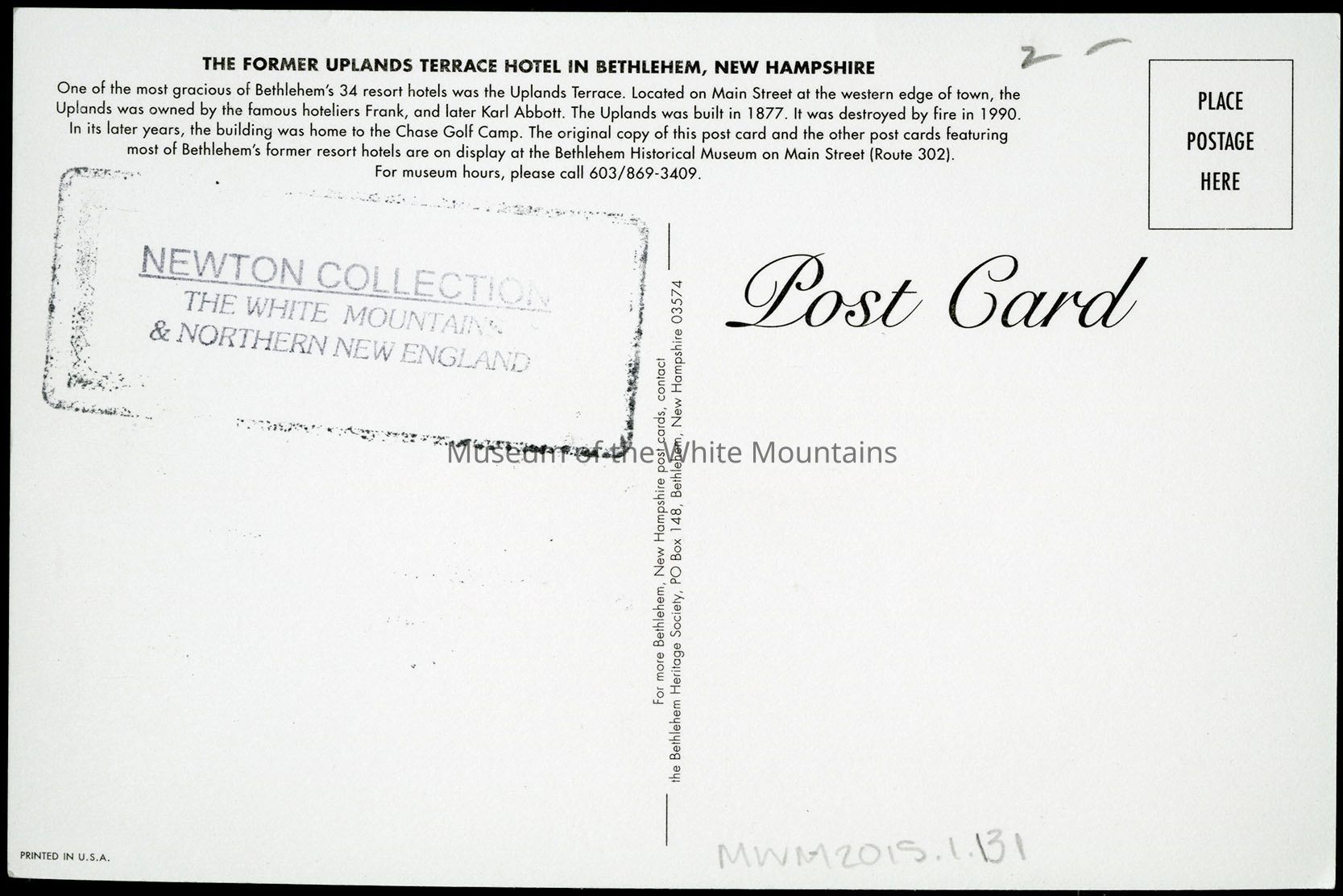 Postal Services, Upland Terrace (Grafton county, New Hampshire : inhabited place), Turrets