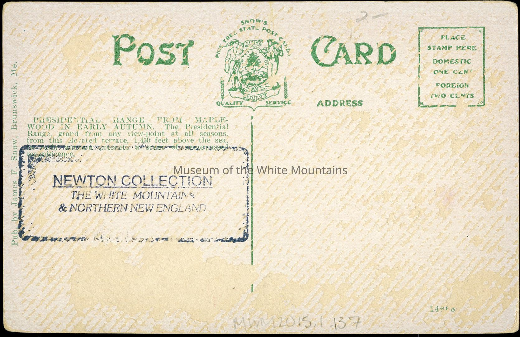 Postal Services, Maplewood Cottage (Grafton county, New Hampshire : inhabited place), Maplewood Hotel (Grafton county, New Hampshire : inhabited place), Presidential Range (Coos county, New Hampshire : ridge)