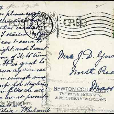 Back Description: A letter is written on the back with a George Washington stamp in the upper right corner.
