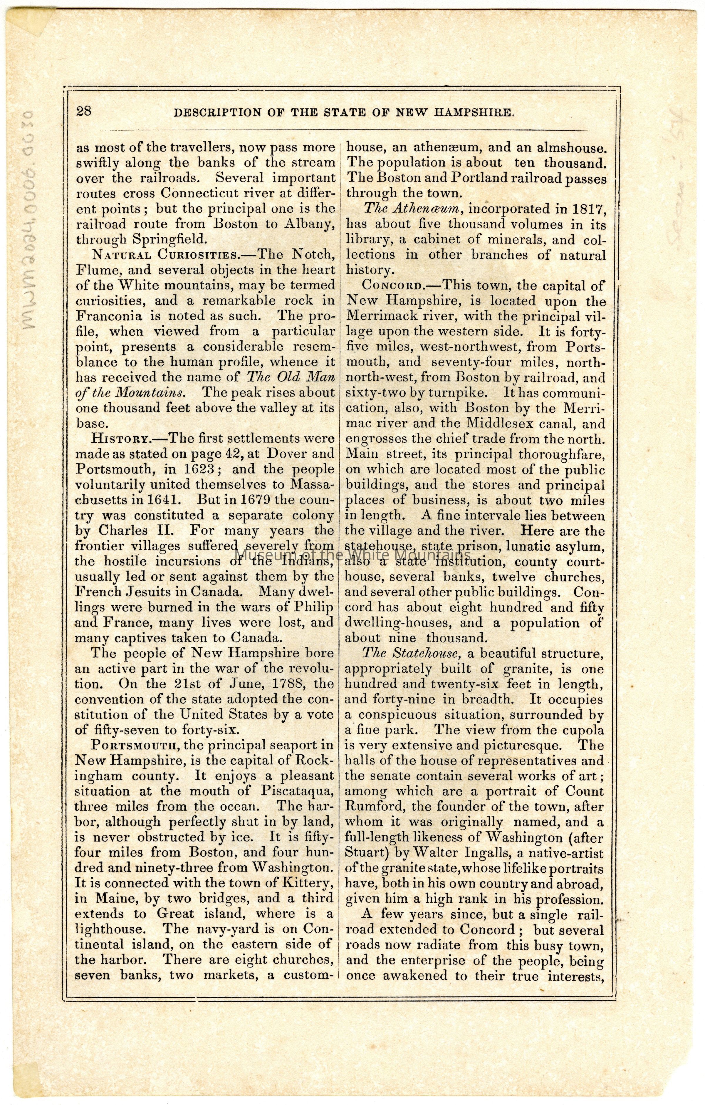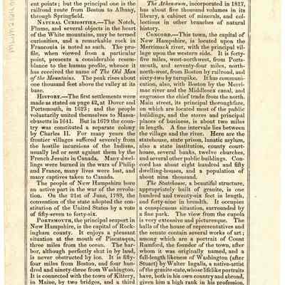 The Notch, The Flume, Concord, Statehouse, Athenaeum, Portsmouth, Dover, Kittery, Continental Island, The Old Man of the Mountains, Canada, Charles II, Boston