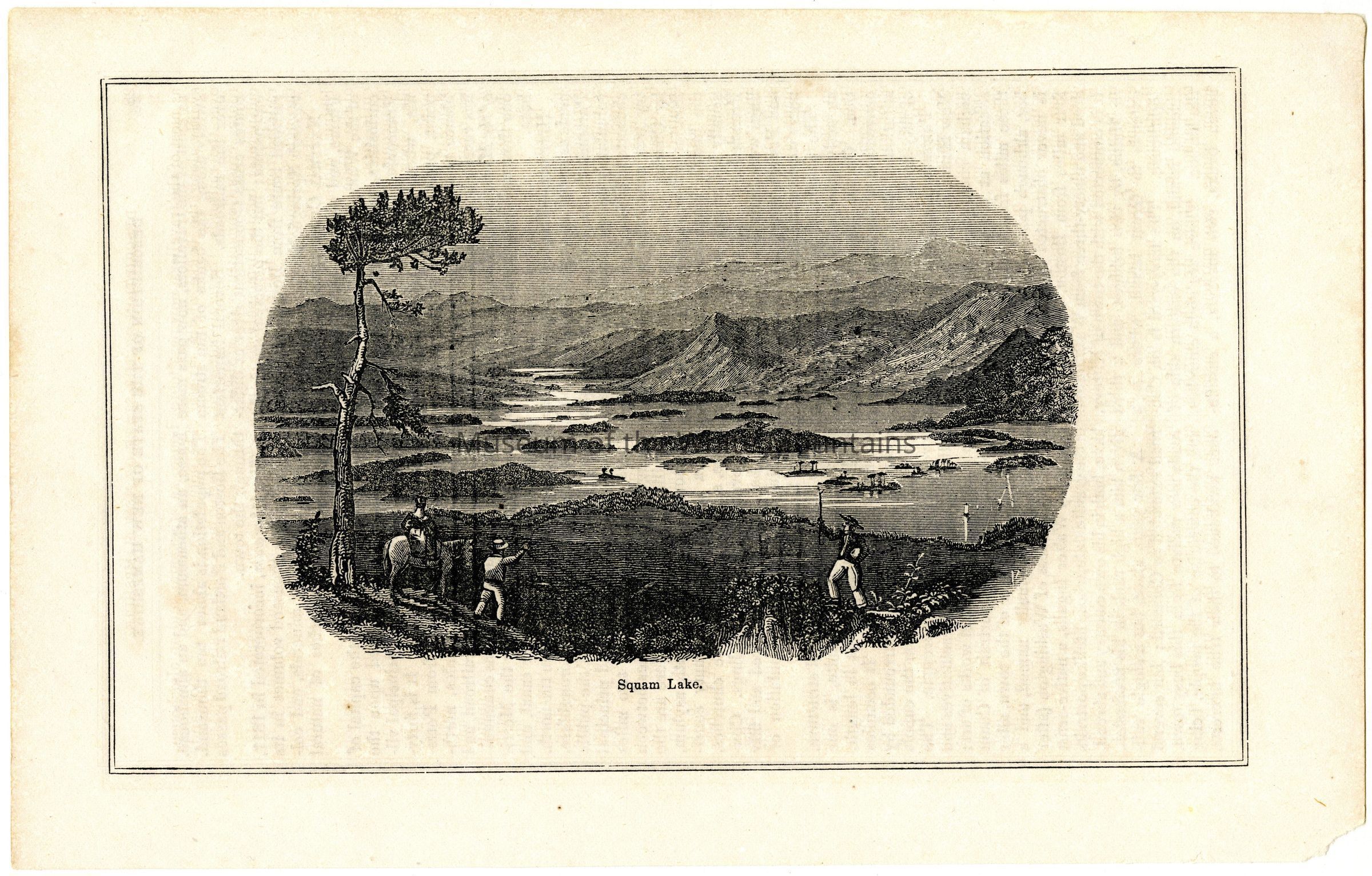 Engraving, Trees, Islands, Lakes & ponds, Mountains, Horses, Sticks, Boats, BoatingSearch Terms