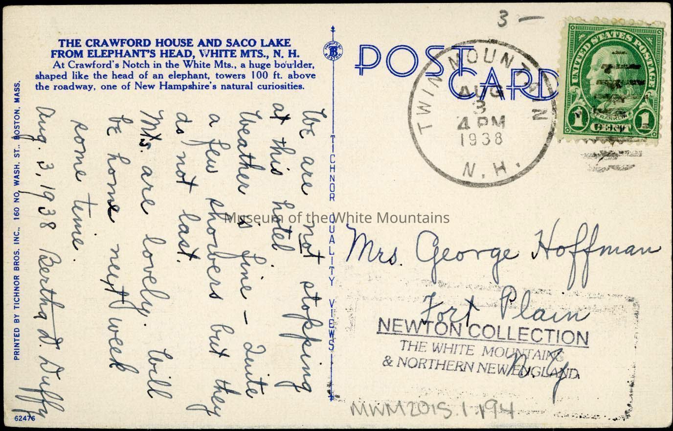 Postal Services, Mountains, Crawford House (Coos county, New Hampshire : inhabited place), Saco Lake (Coos county, New Hampshire : lake), Lakes, Tracks