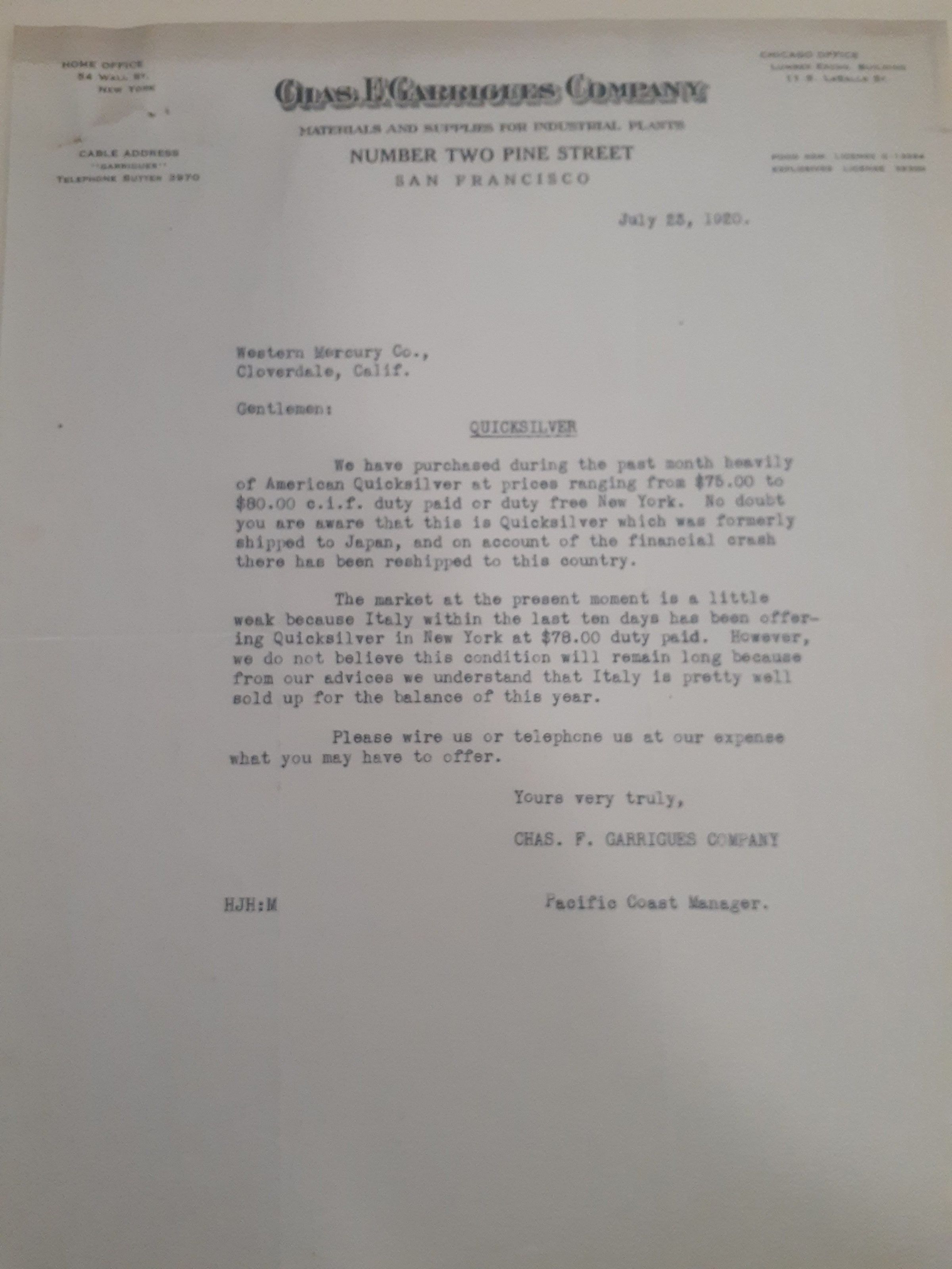 This document is again referring to the affects of the decrease in value of quicksilver because of Japanese and Italian markets.