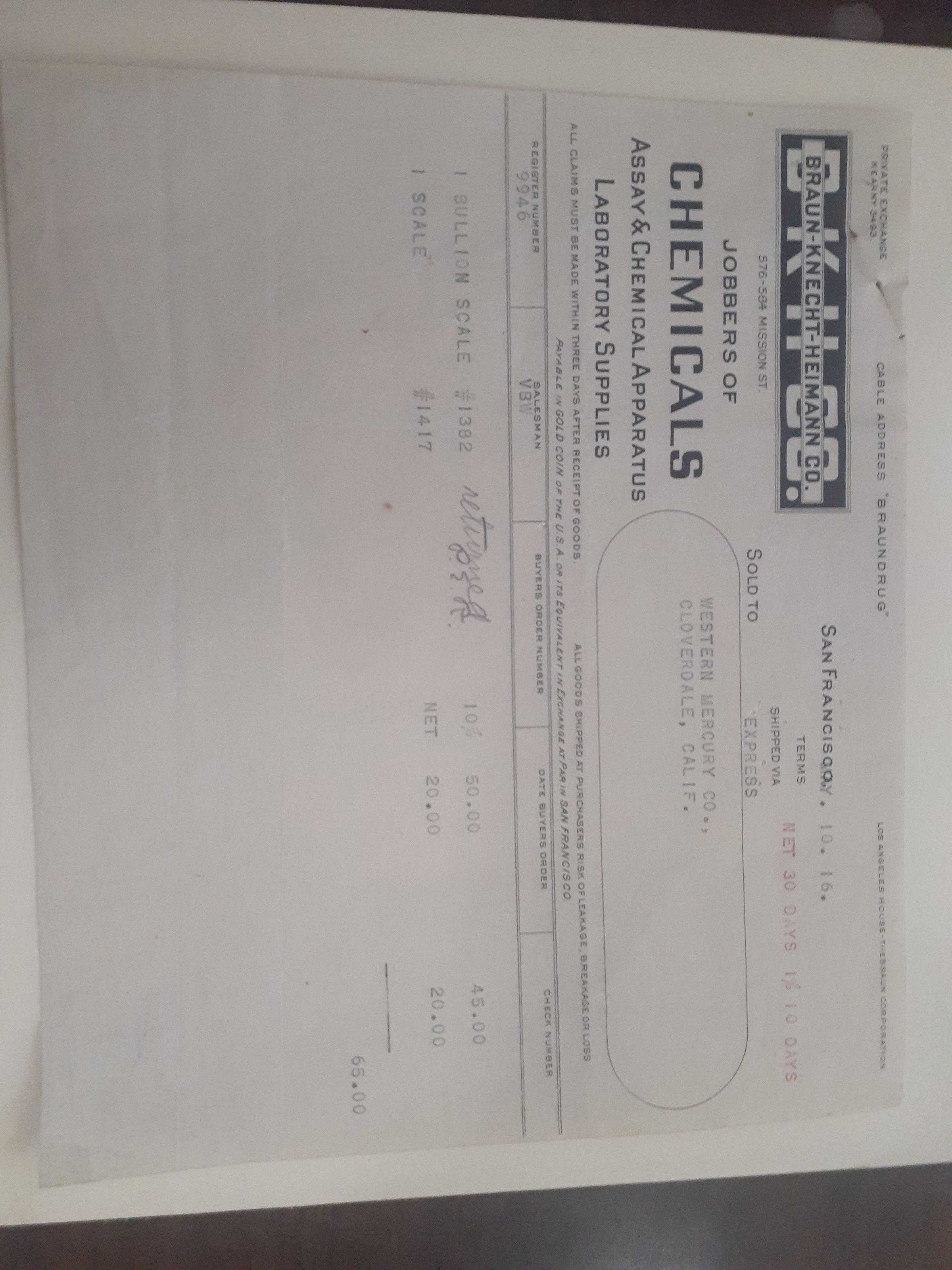 This document is a sales receipt for the Western Mercury Co. in Cloverdale, California from the Braun-Knecht-Heimann Co.