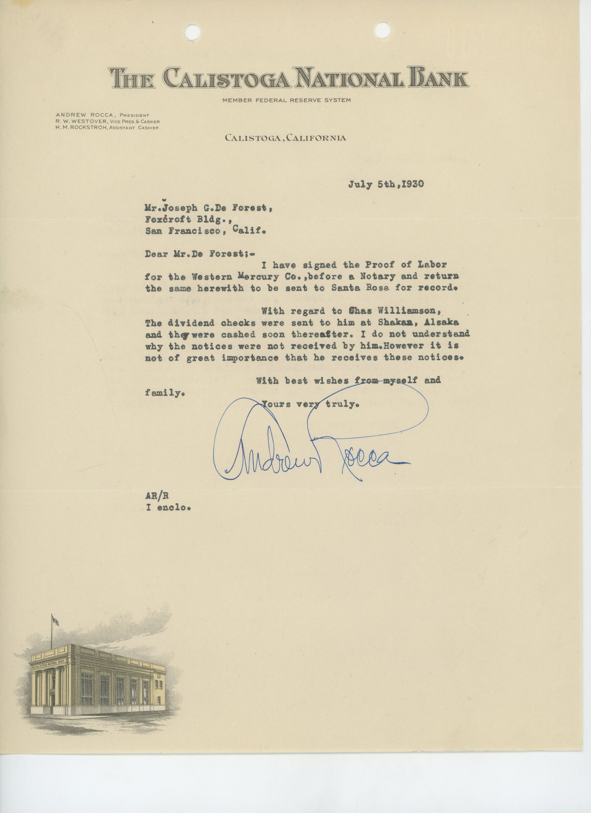 Letter to Joseph G DeForest from Andrew Rocca regarding Proofs of Labor and issues with Williamson receiving shareholder notices.