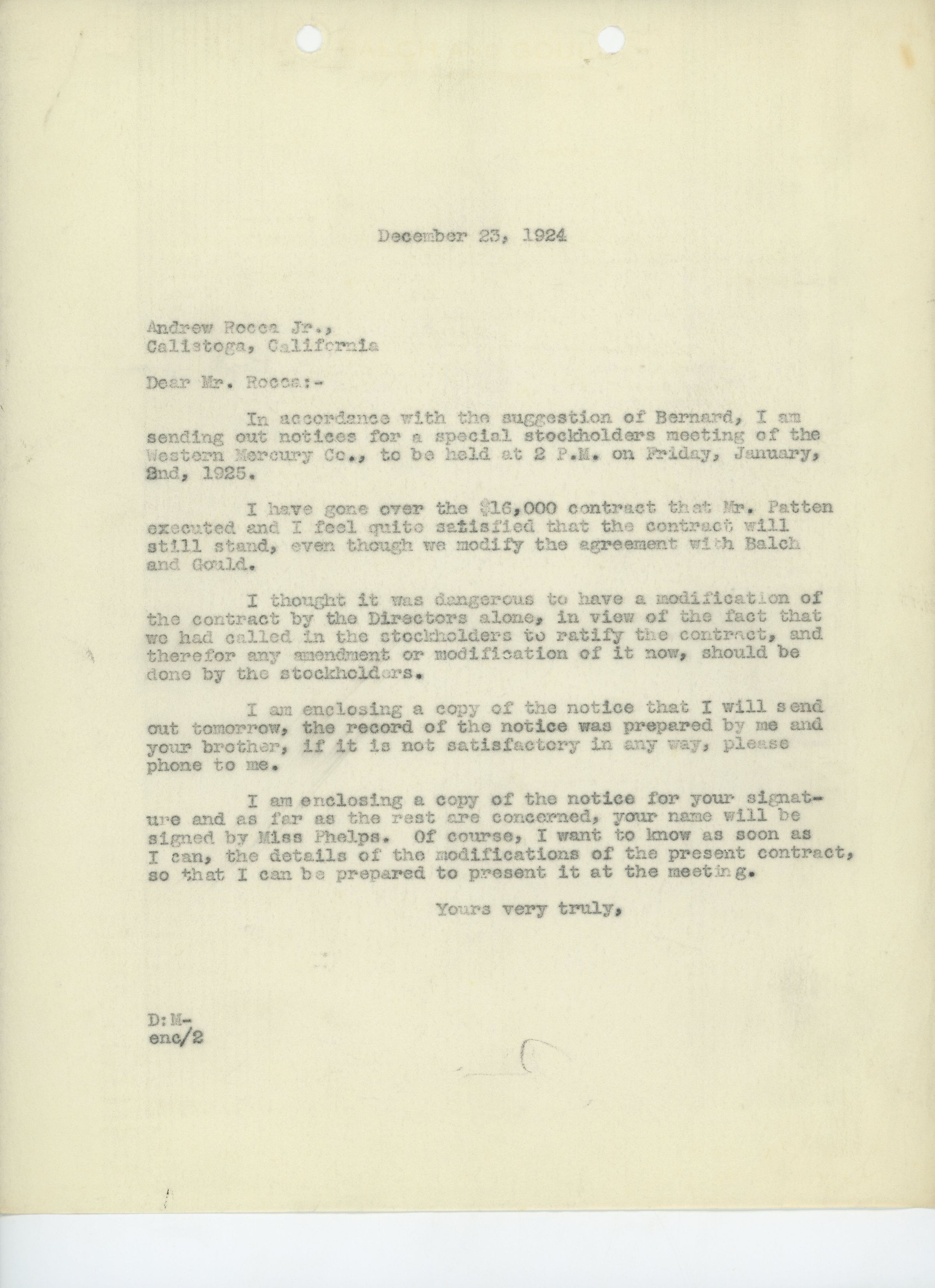 Unsigned letter to Andrew Rocca, Jr., regarding a stockholders meeting to approve modifying a $16,000 contract.