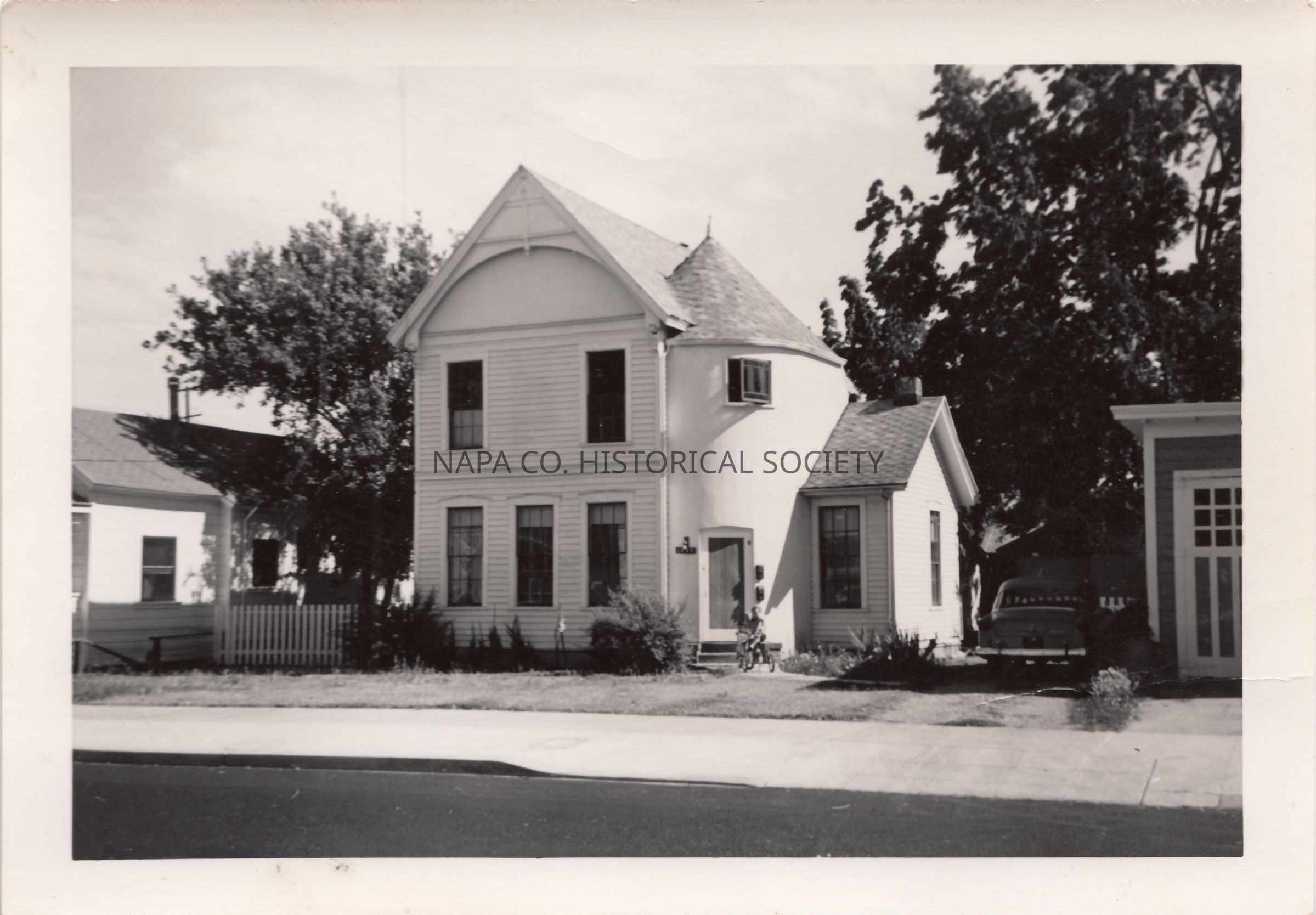 1338 Oak Street, Napa. Photo taken summer 1959. According to donor, a former Napa City mayor used to live there. At one point there were 40 trees on the lot. The house was broken up into apartments in the 1960s. PF Location: Born-digital