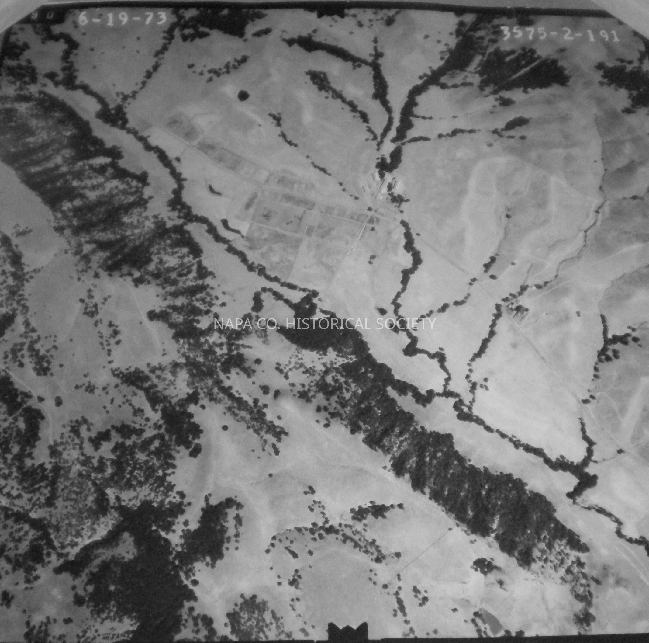 Ariel photograph of the Napa County area. The precise location within the image is as of yet undetermined. These photos are viewable by appointment only, to make an appointment contact Jules Evans-White, Research and Volunteer Coordinator at research@napahistory.org or 707-224-1739