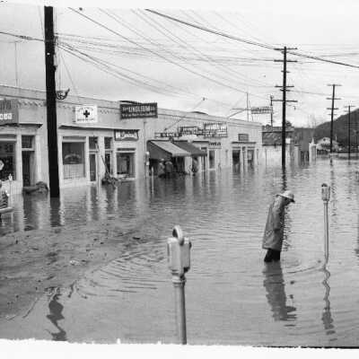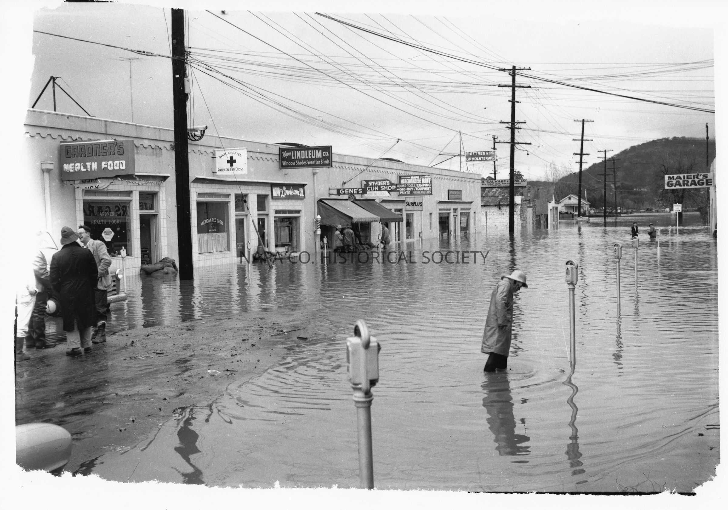 Floods, Flooding, 1950s, Pearl Street, Gardner's Health Food, Napa Charter American Red Cross, Napa Linoleum Co., Snyder's Gun Shop, Napa Merchandise Mart