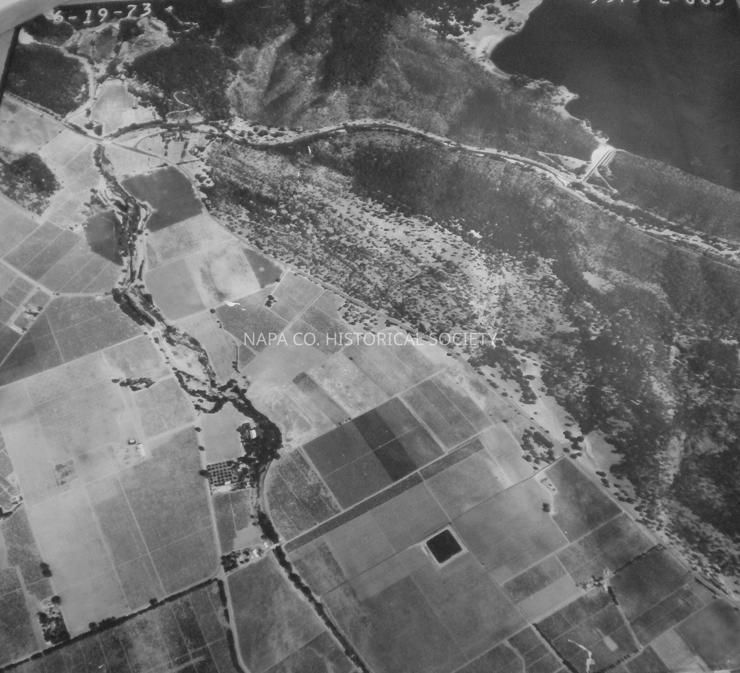 Ariel photograph of the Napa County area. The precise location within the image is as of yet undetermined. These photos are viewable by appointment only, to make an appointment contact Jules Evans-White, Research and Volunteer Coordinator at research@napahistory.org or 707-224-1739