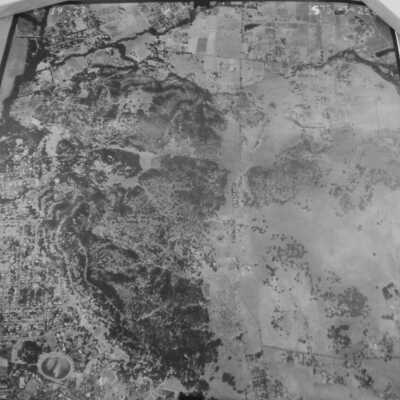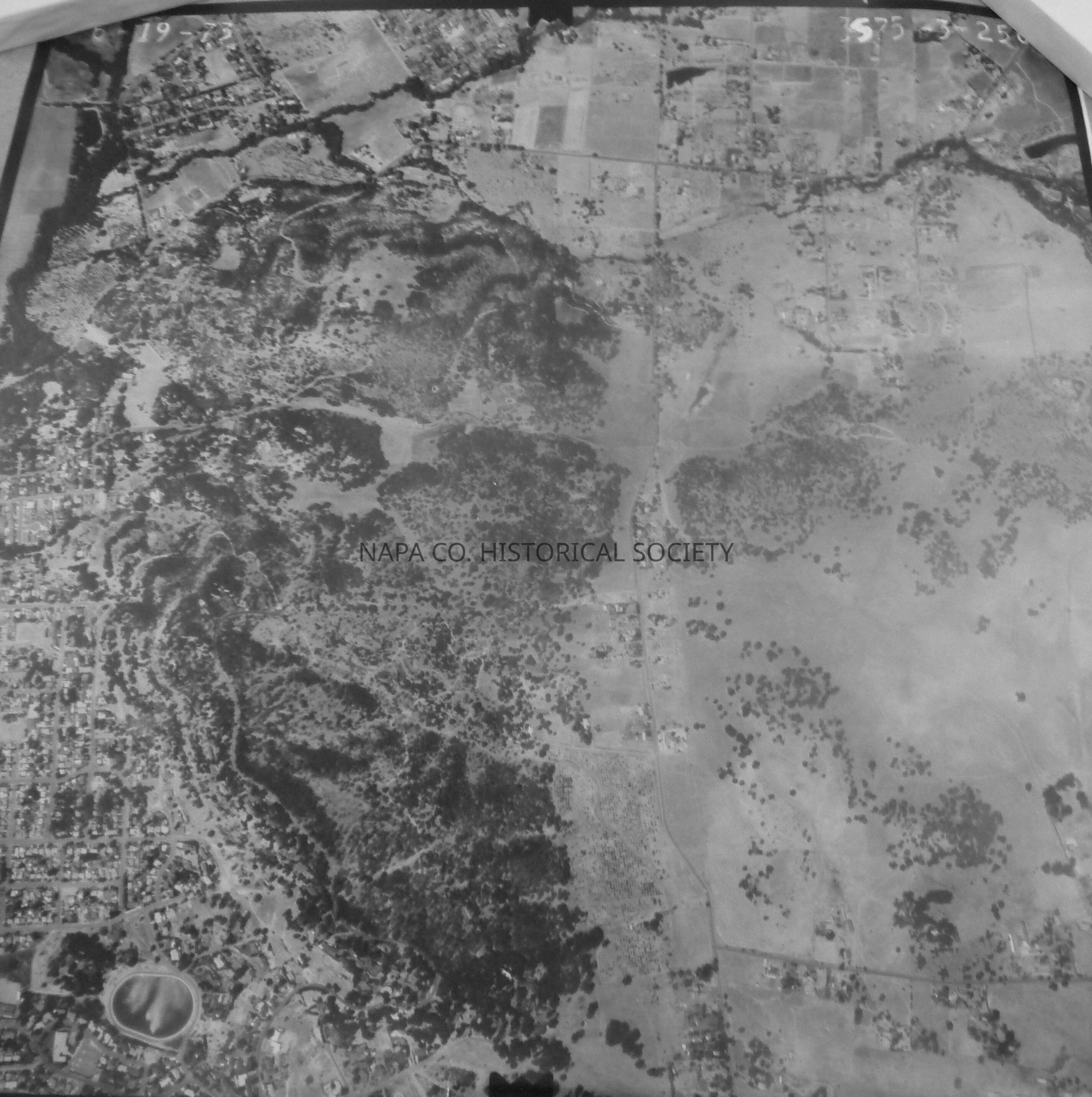 Ariel photograph of the Napa County area. The precise location within the image is as of yet undetermined. These photos are viewable by appointment only, to make an appointment contact Jules Evans-White, Research and Volunteer Coordinator at research@napahistory.org or 707-224-1739