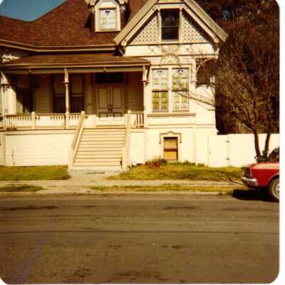 Color photograph of a house. Back says, "1893 - 1386 Calistoga Ave. Herman Shivarz 1903 - Manuel Silva" Location: PF 119 #3439