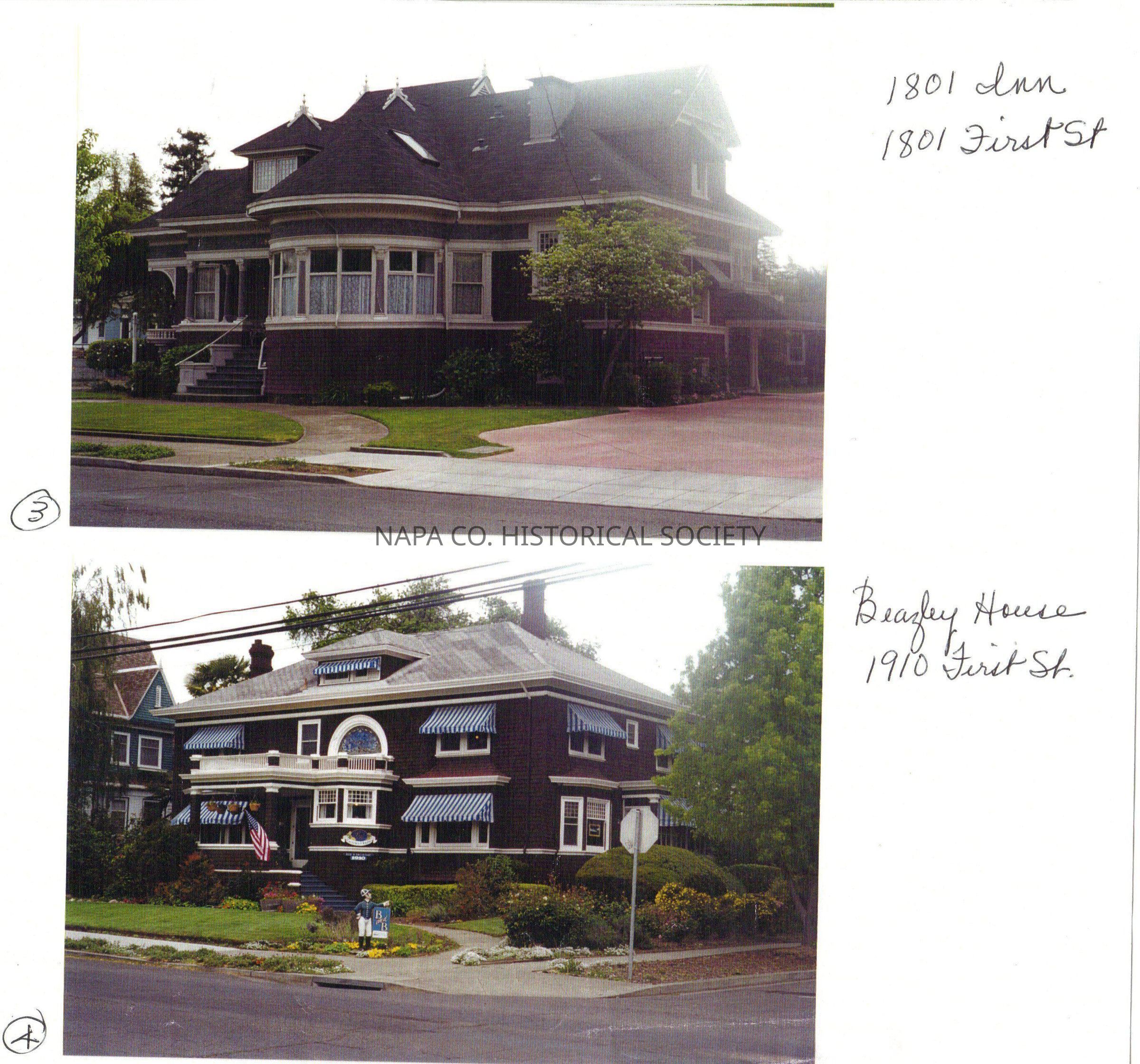 Two color photographs of historic homes in Napa. The top, (3) is 1801 Inn, 1801 first Street. The bottom, (4), Beazley House, 1910 First Street.