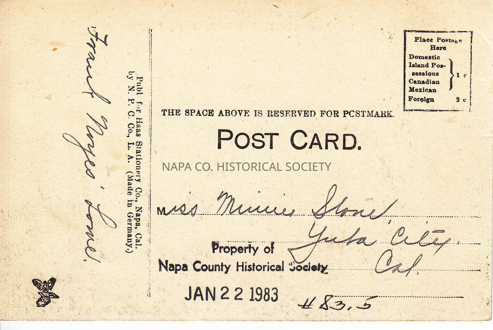 "Residence and High School. Napa, Cal." PostcardEntry/Object ID