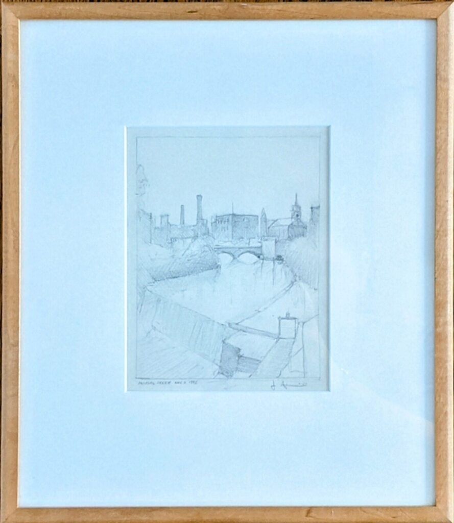View of Nashua New Hampshire from Jackson Mills, inital sketch Nov 2, 1985Description