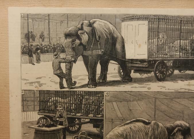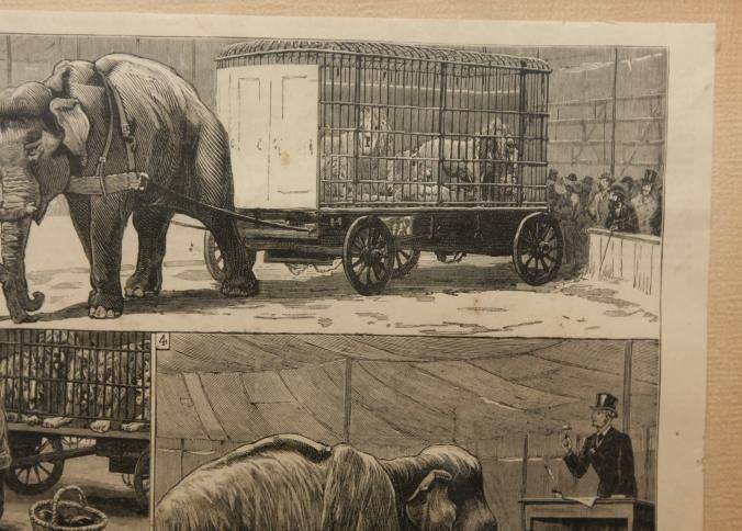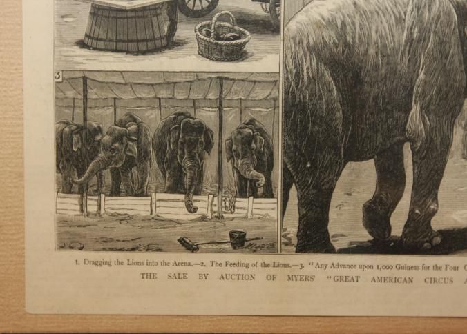 FR. 1882 ENGRAVING OF A CIRCUS AUCTION HAVING 4 ACTION SCENES. 9X9 1/2". CLEAN AND ORIGINAL CONDITION WITH GREAT DETAIL.Type of Print