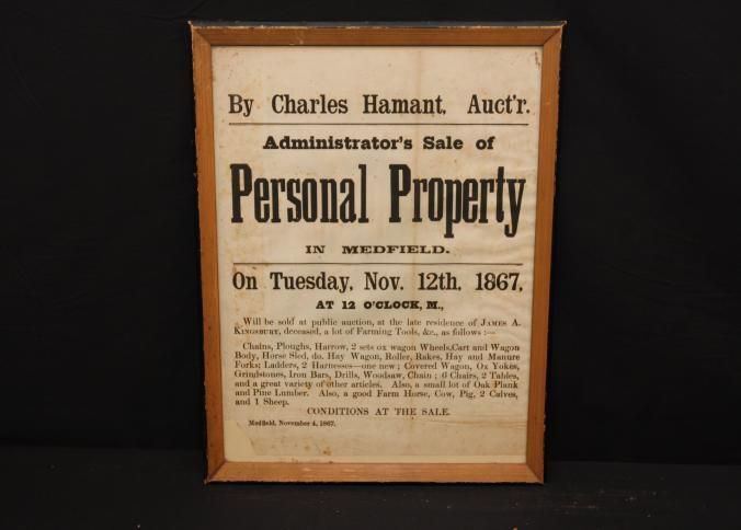FR. 1867 PERSONAL PROPERTY FARM BROADSIDE. 11X14". CHARLES HAMANT, AUCTIONEER.
