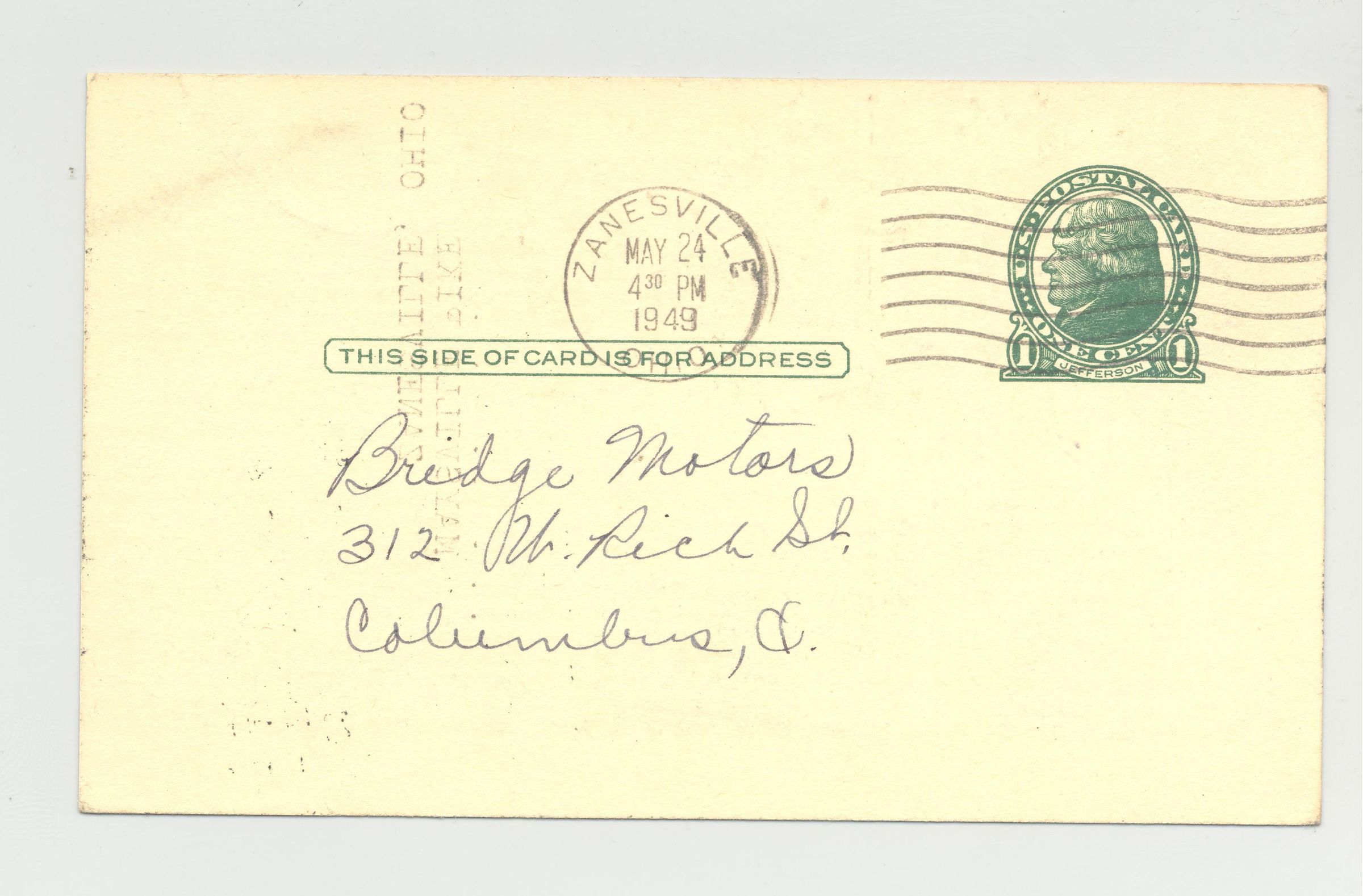 PSTCD, AUTO, 1949, OH. TYPED INFO FOR DEALER AUCTION.