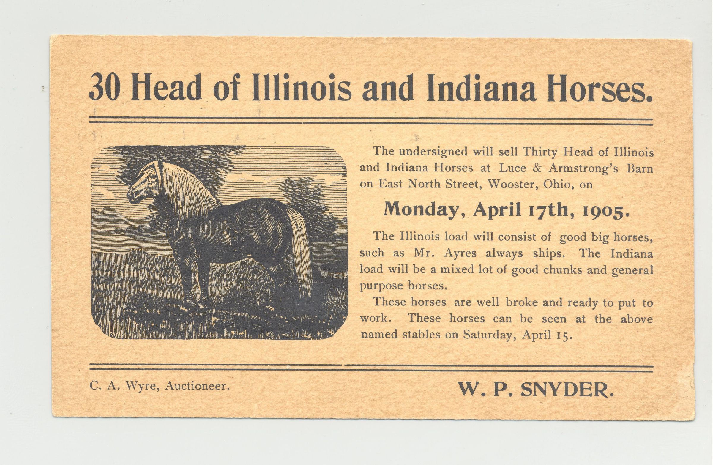 PSTCD, HORSE, OH, 1905. C.A. WYRE, AUCTIONEER