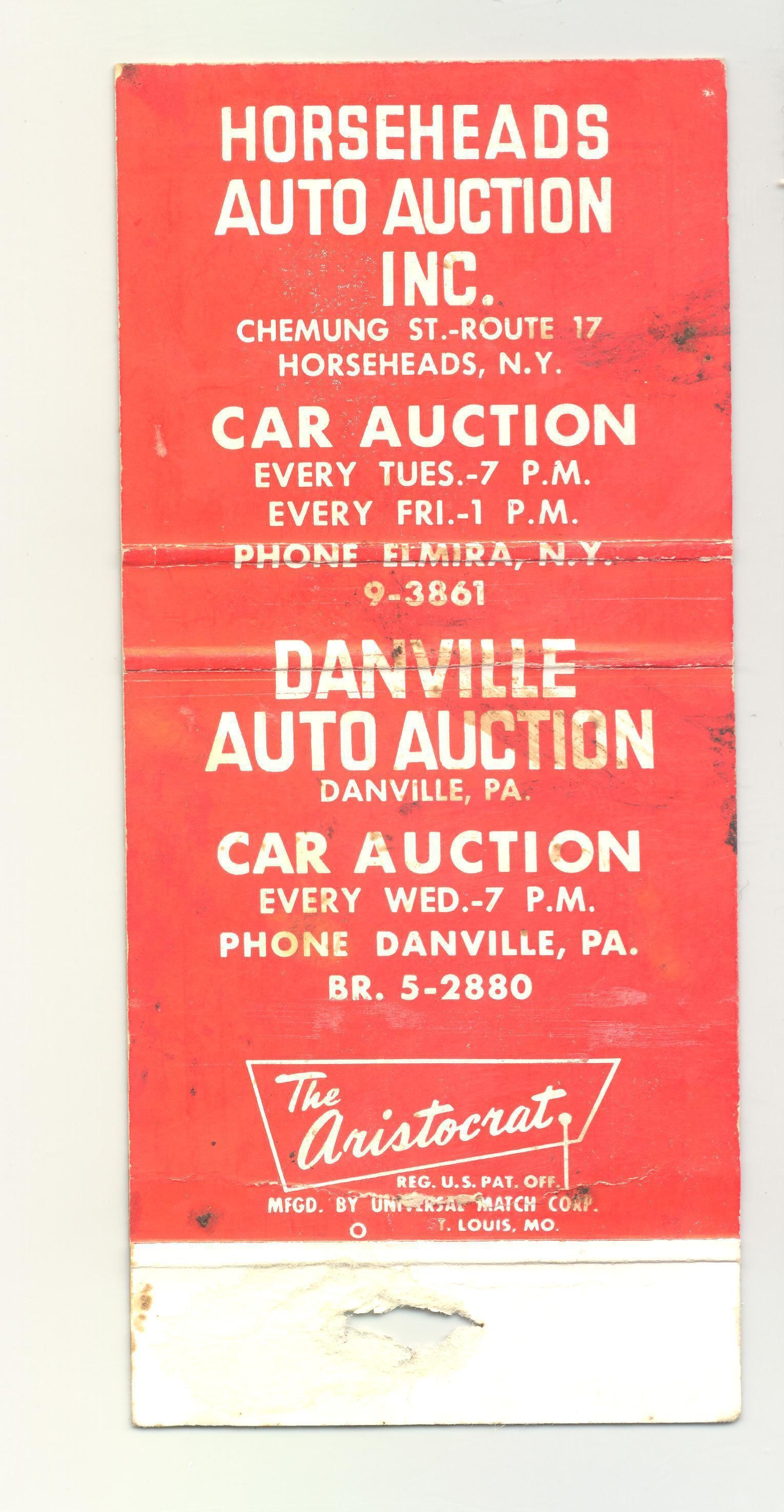 MATCHBOOK, AUTO, PA. HORSEHEADS AUTO AUCTION, INC. AERIAL PHOTO
