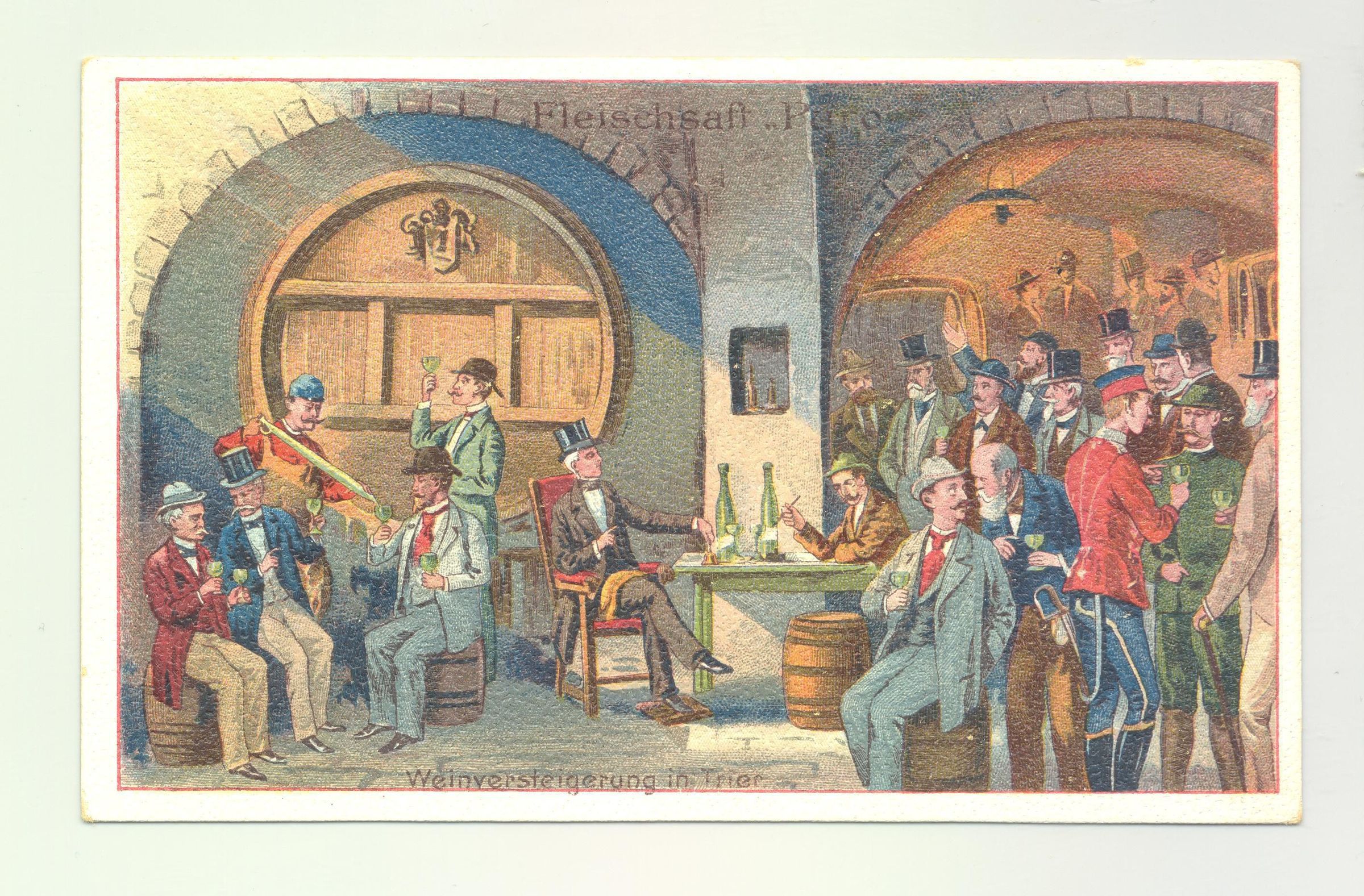 TRCD, ADV, FORIEGN. COLOR SCENE MEN DRINKING. "FLEISCHSAFT... PURO"