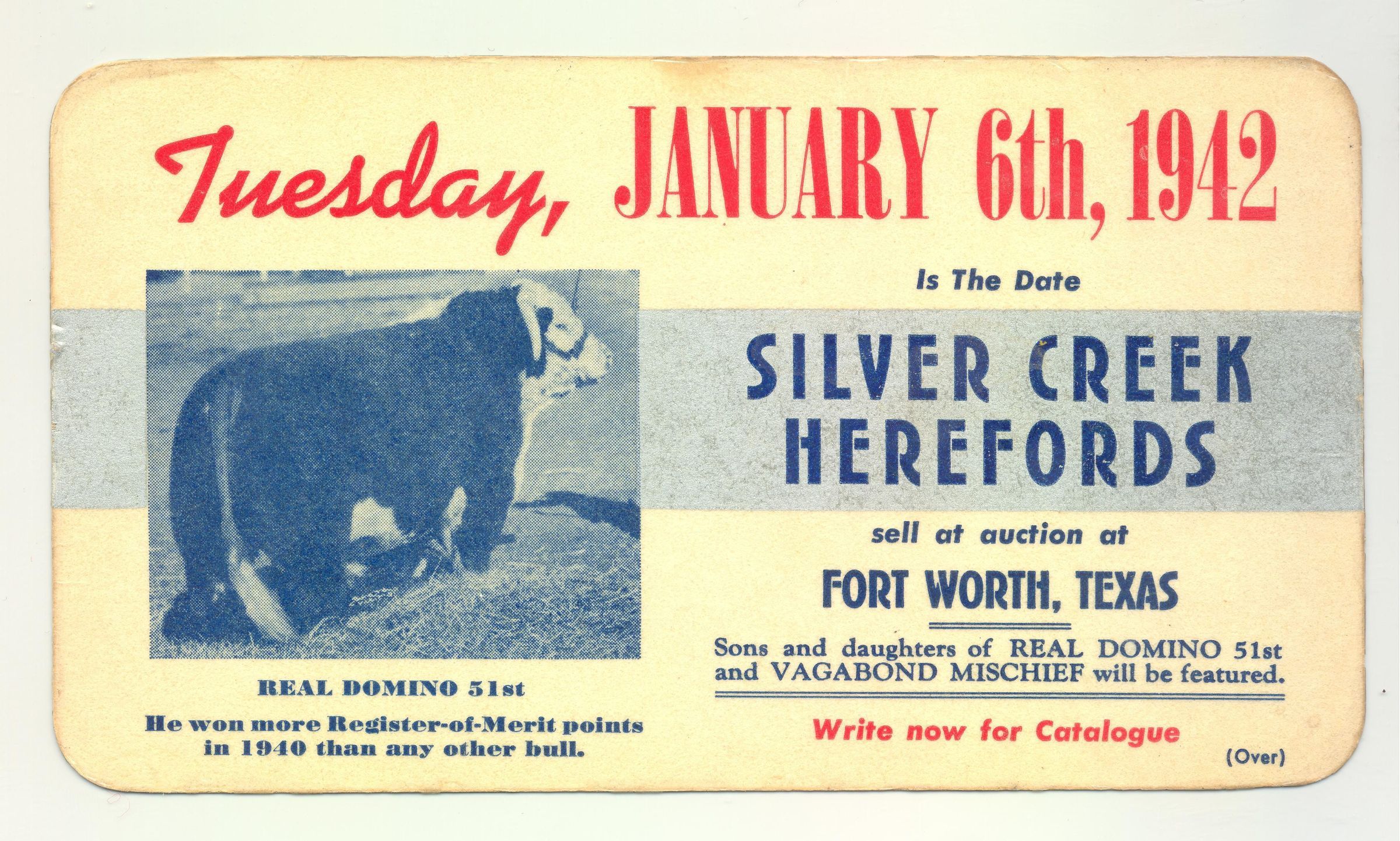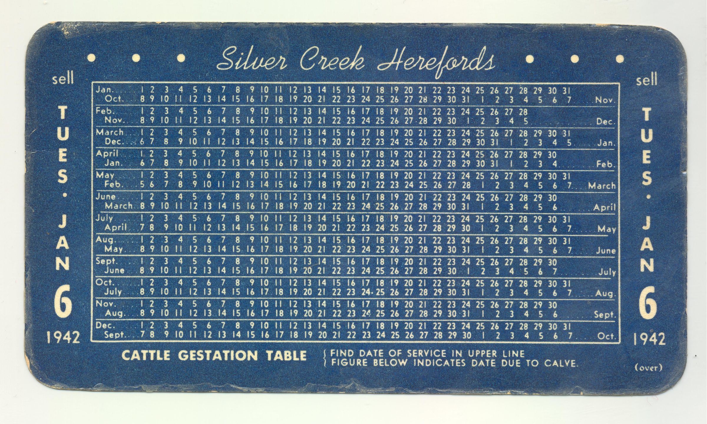 PSTCD, CATTLE, 1942, LAMINATED, TX. ON BACK IS CATTLE GESTATION TABLE