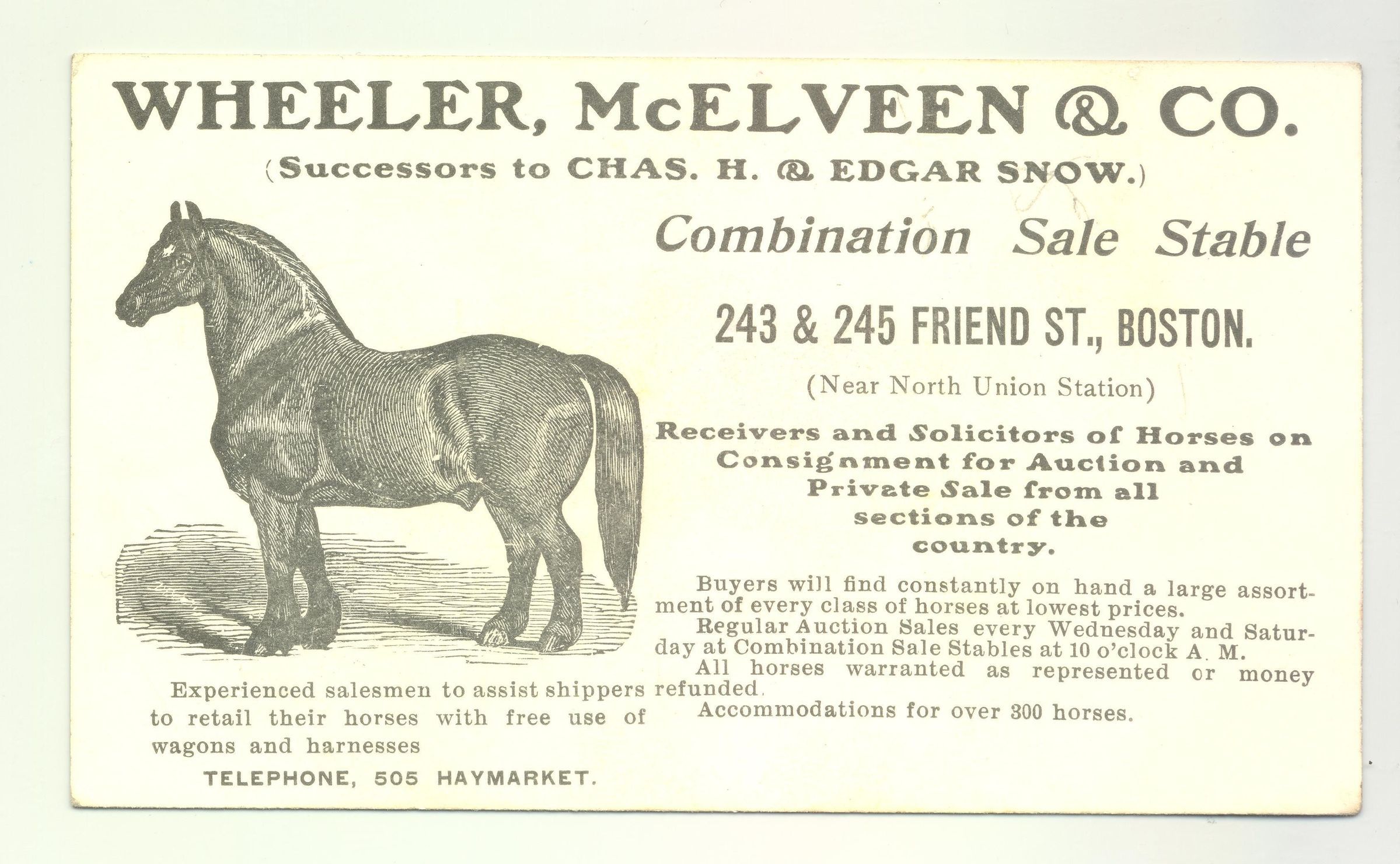 PSTCD, HORSE, MA. WHEELER, MCELVEEN & CO. BOSTON. PRINT OF HORSE
