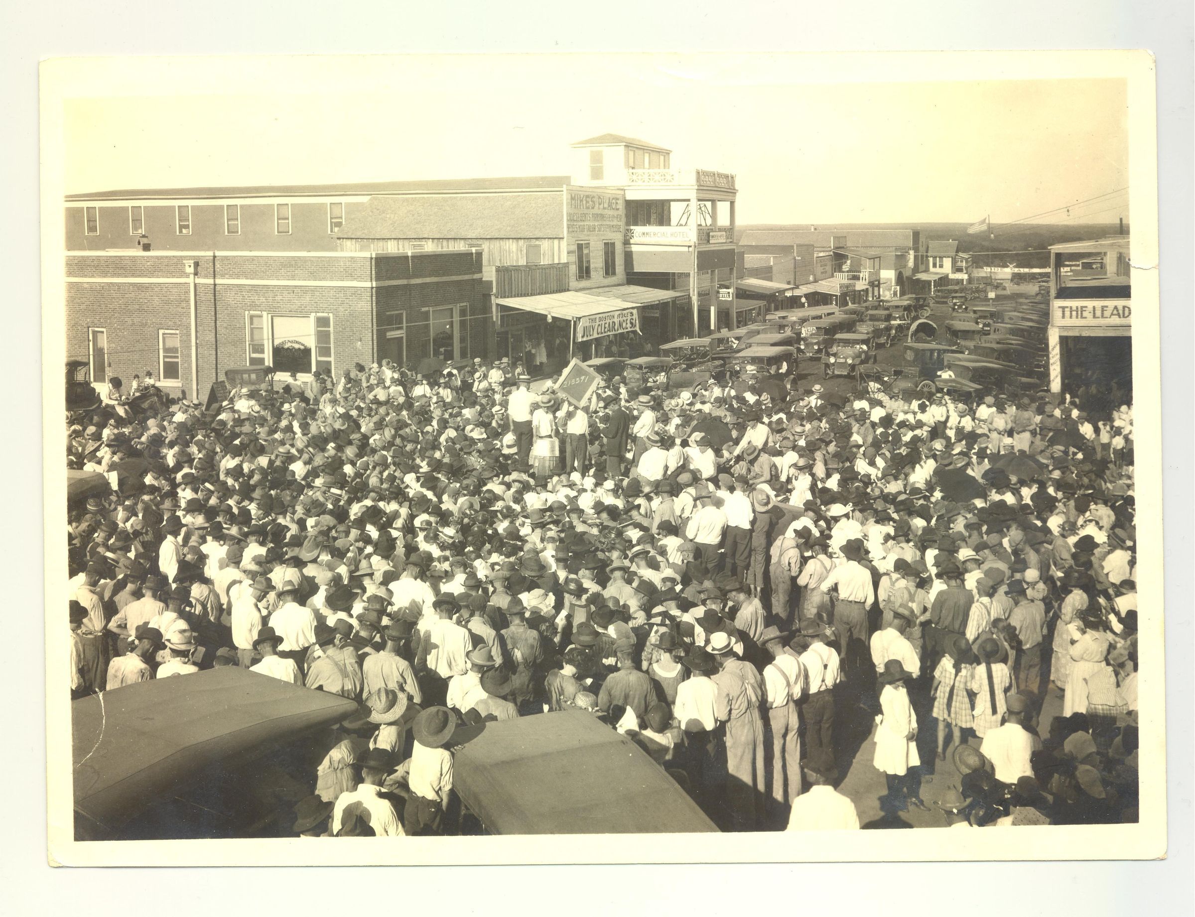 PHOTO, STREET AUCTION, BOSTON, MA 1920'S? OLD CARS PARKED IN BACKGROUND. 5" X 7"