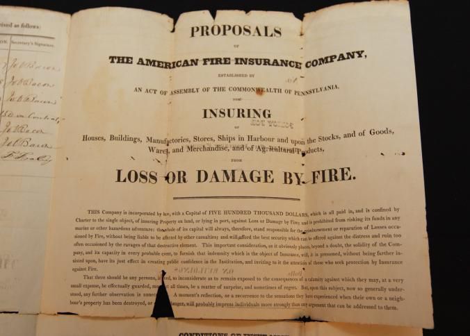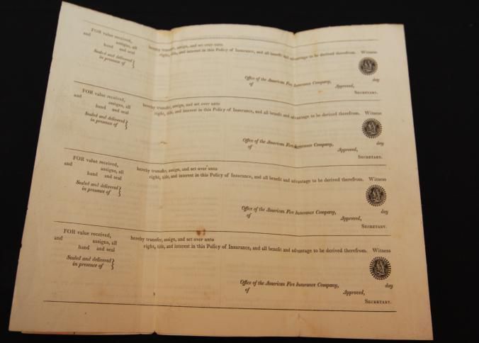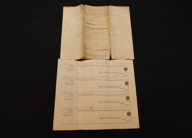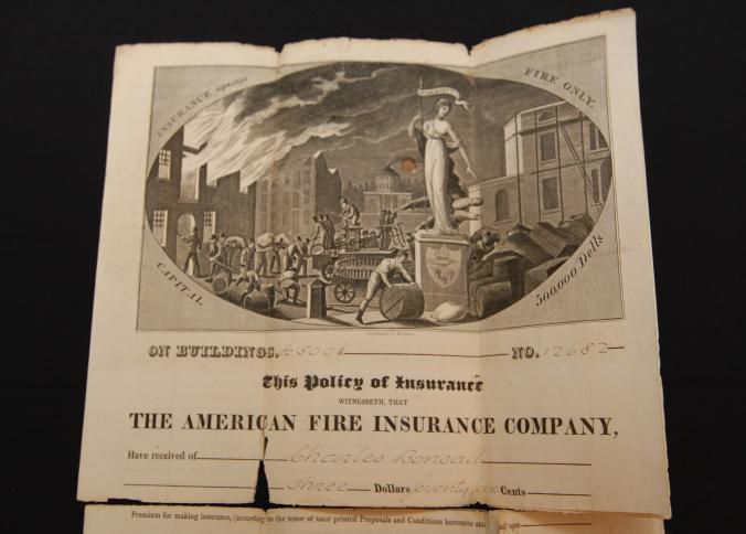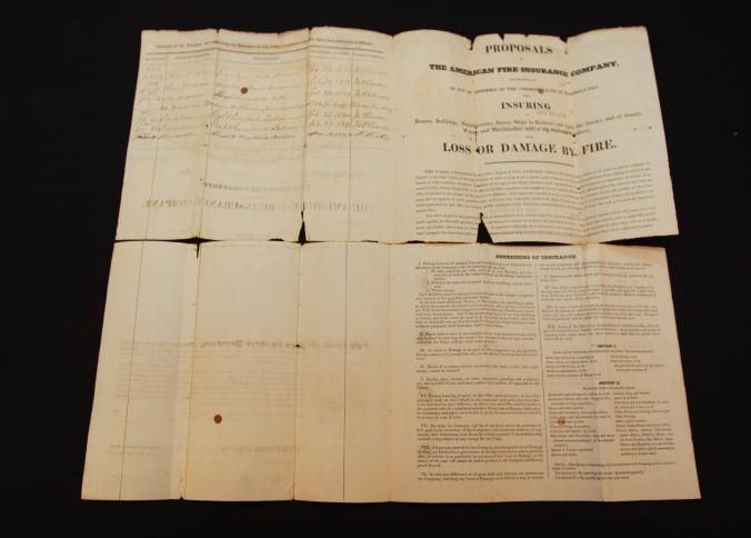 DOC, INSURANCE POLICY, FIRE, 1835. IN 2 PIECES.