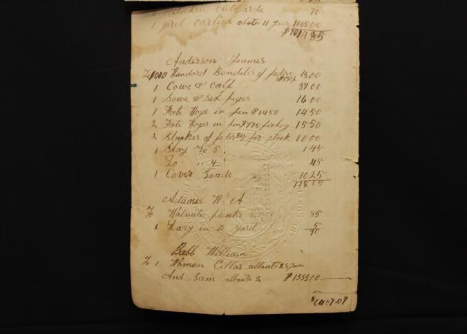DOC, ESTATE SETTLEMENT, 1862. 6" X 14 1/2" PAPER