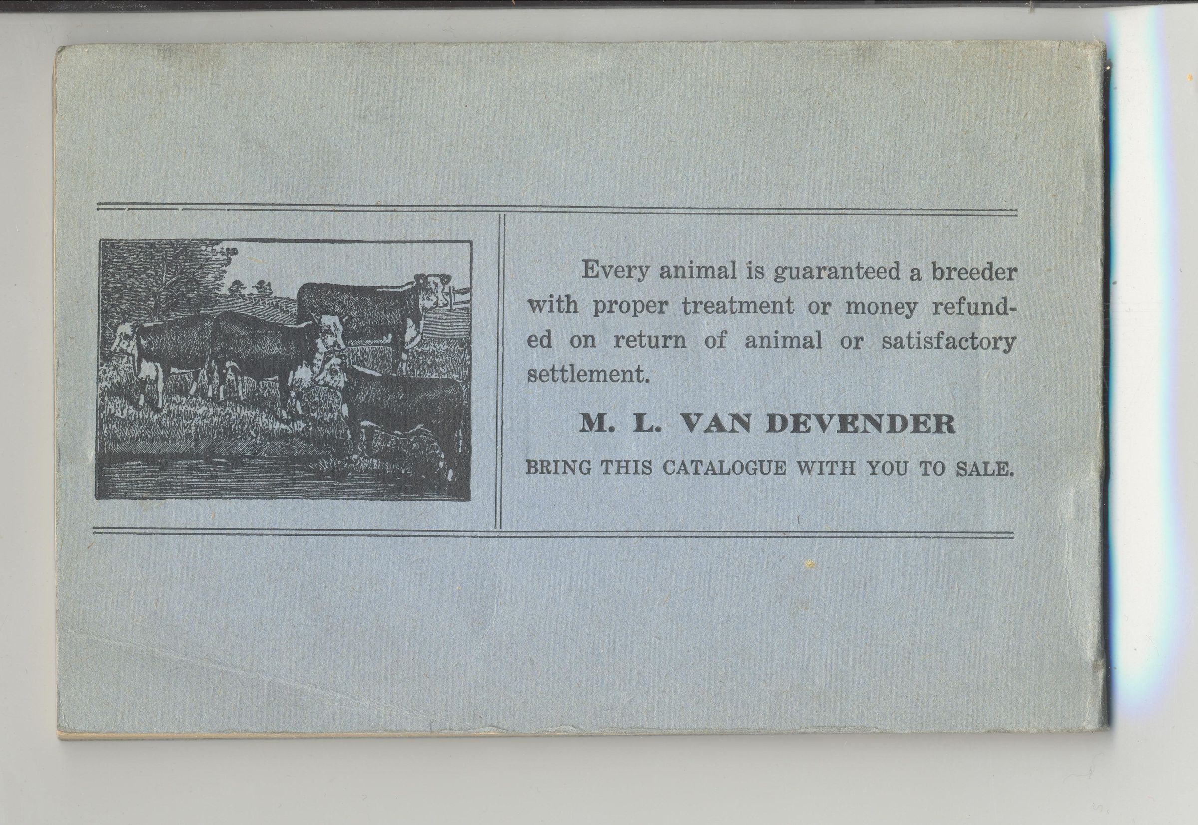 CAT, CATTLE, 1909, WV. ANNUAL SALE OF HEREFORD CATTLE. COL. G.A. HANAWALT & CO. 25 PP. 6" X 4"