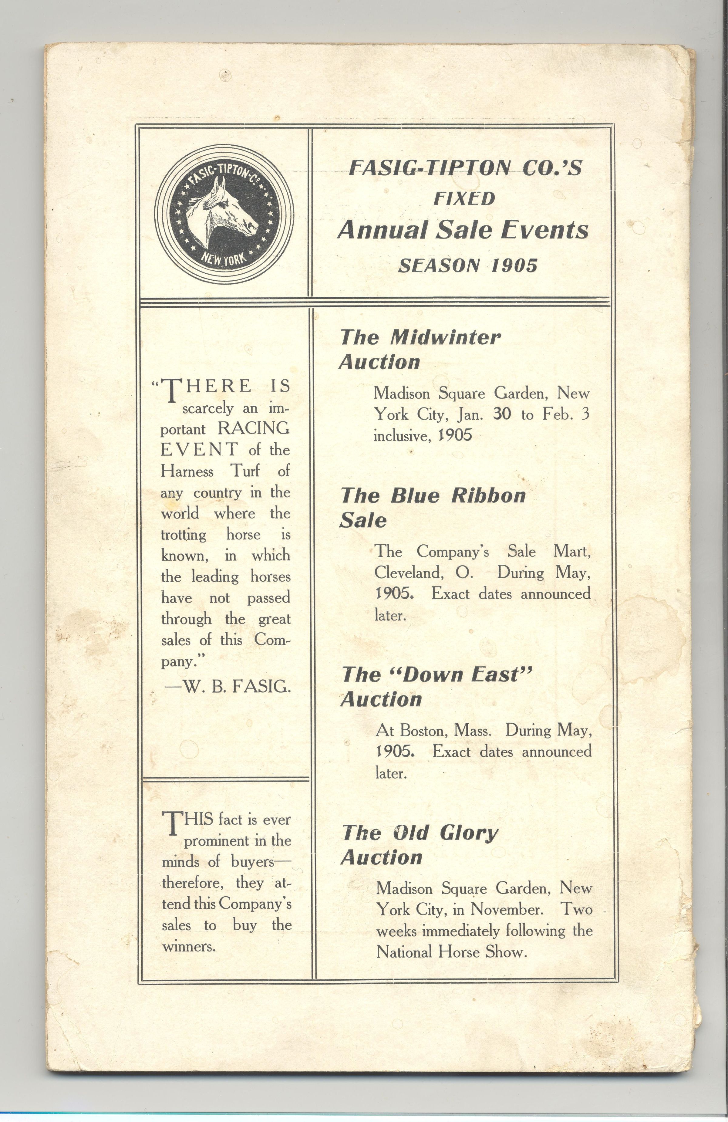 CAT, HORSE, 1905, NY. ABSOLUTE DISPERSAL OF VILLAGE FARM, EAST AURORA, NY. HELD AT MADISON SQ GARDEN, NYC. 36 PP. 5" X 8", B/W PRINT ON COVER.Created By