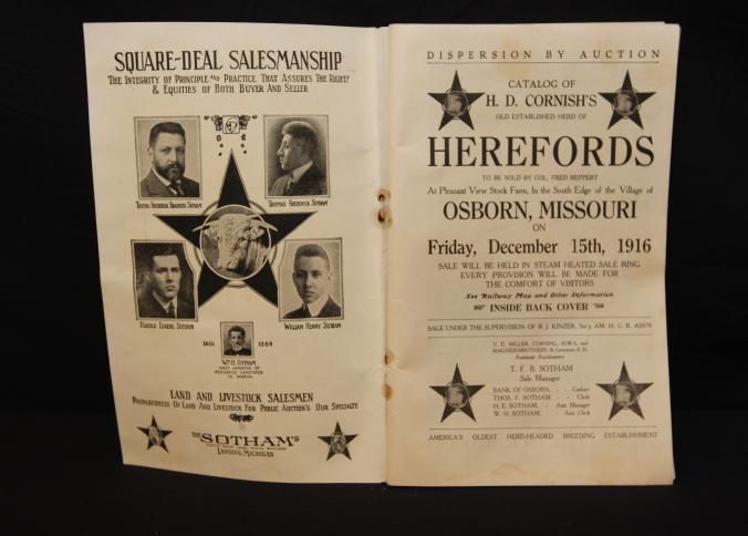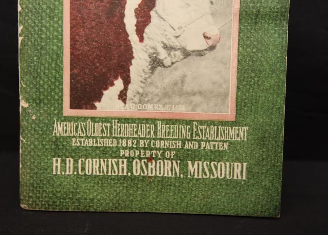 CAT, CATTLE, 1916, MO. H.D. CORNISH'S OLD EST. HERD OF HEREFORDS, COL. FRED REPPERT, AUCT. B/W PHOTOS OF MOST LOTS, 112 PP. 8" X 5 1/2"Created By