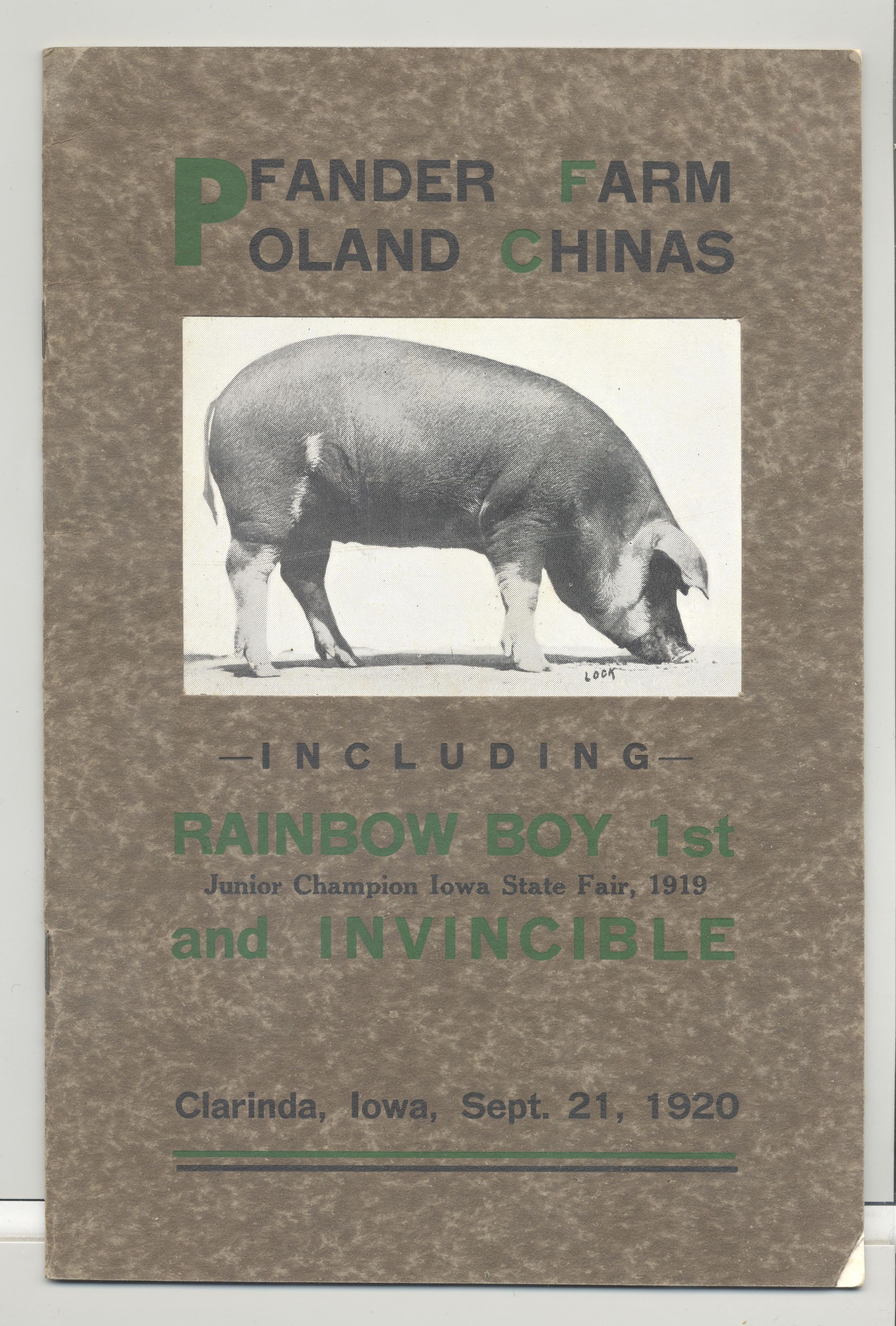 CAT, PIGS, 1920, IA. PFANDER FARM POLAND CHINAS, B/W PRINTS OF SOME LOTS, INCL "RAINBOW BOY 1ST" AND "INVINCIBLE" 22 PP. 6" X 9"Created By