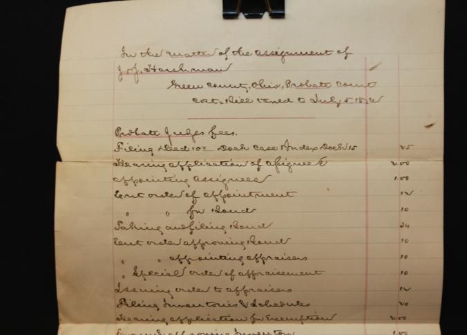 BILL, ESTATE, 1876, OH. GREENE CTY OH PROBATE COURT COST BILL. HARSHMAN ASSIGNMENT