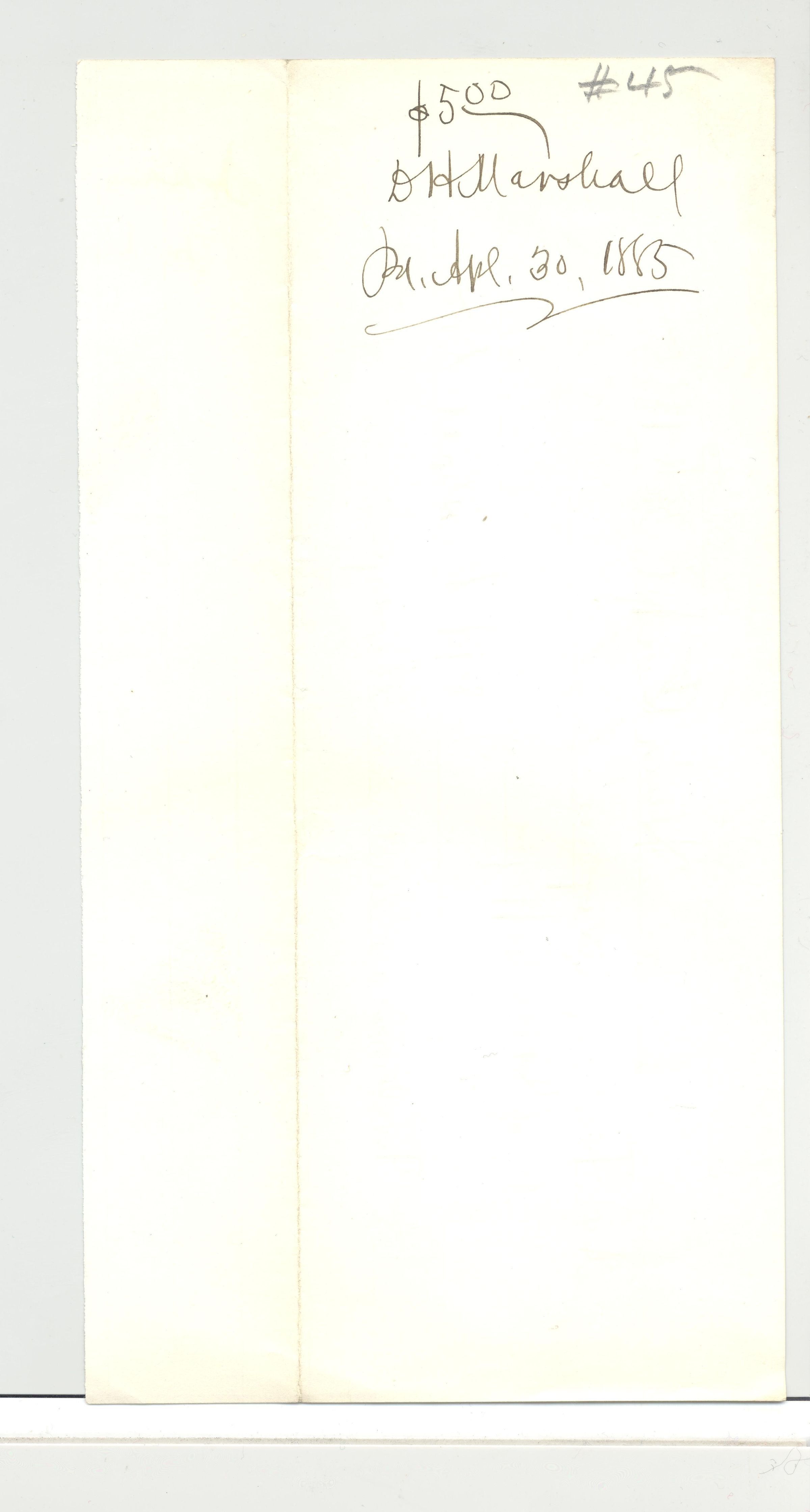 REC, 1885, OH. $5 FOR SERVICES AS AUCTIONEER. SIGNED D.H. MARSHALL