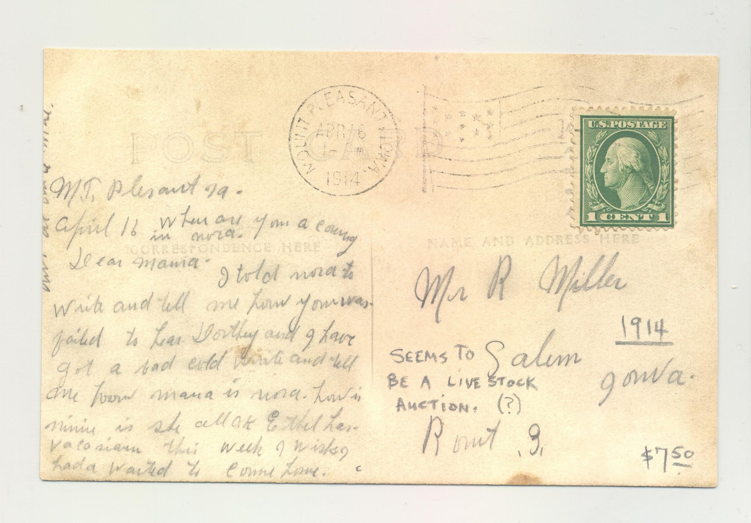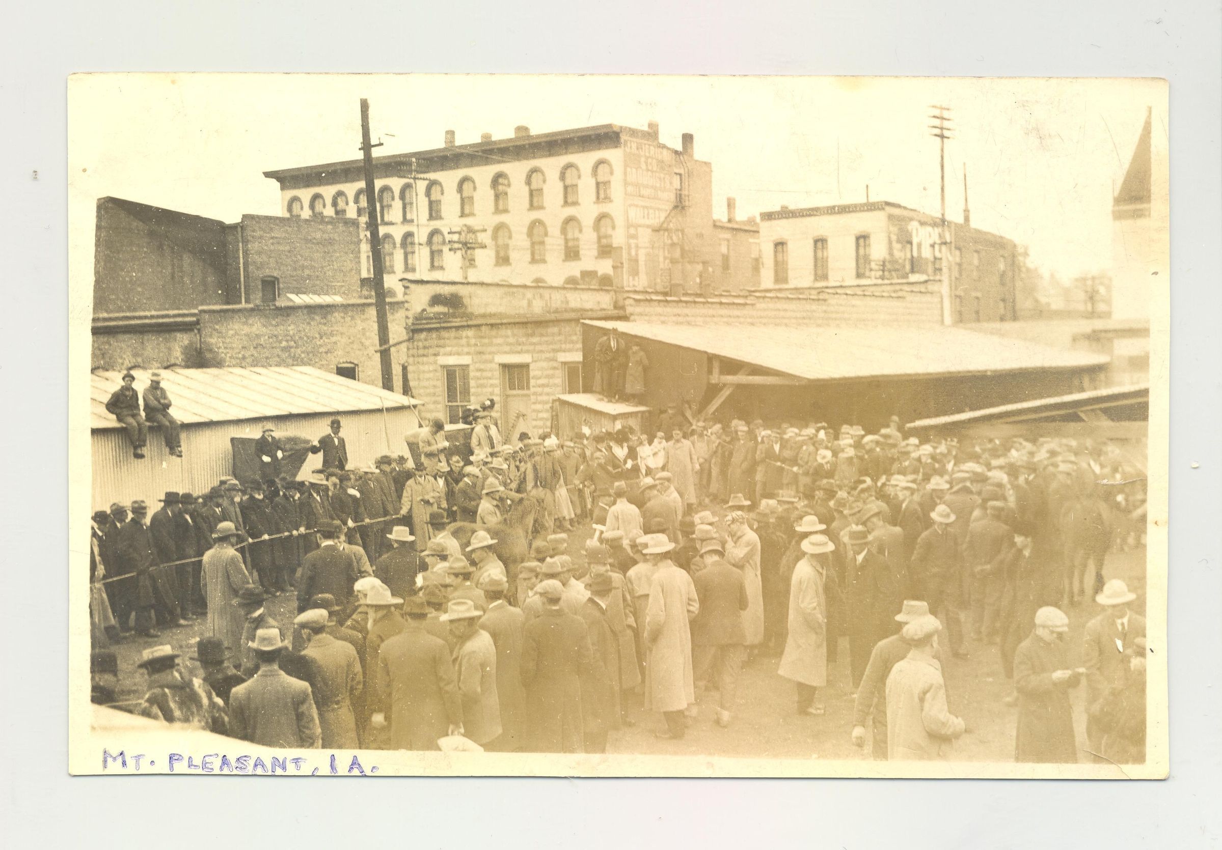 PSTCD, LIVESTOCK, 1914, IA. CROWD IN STREET. MT PLEASANT, IA.