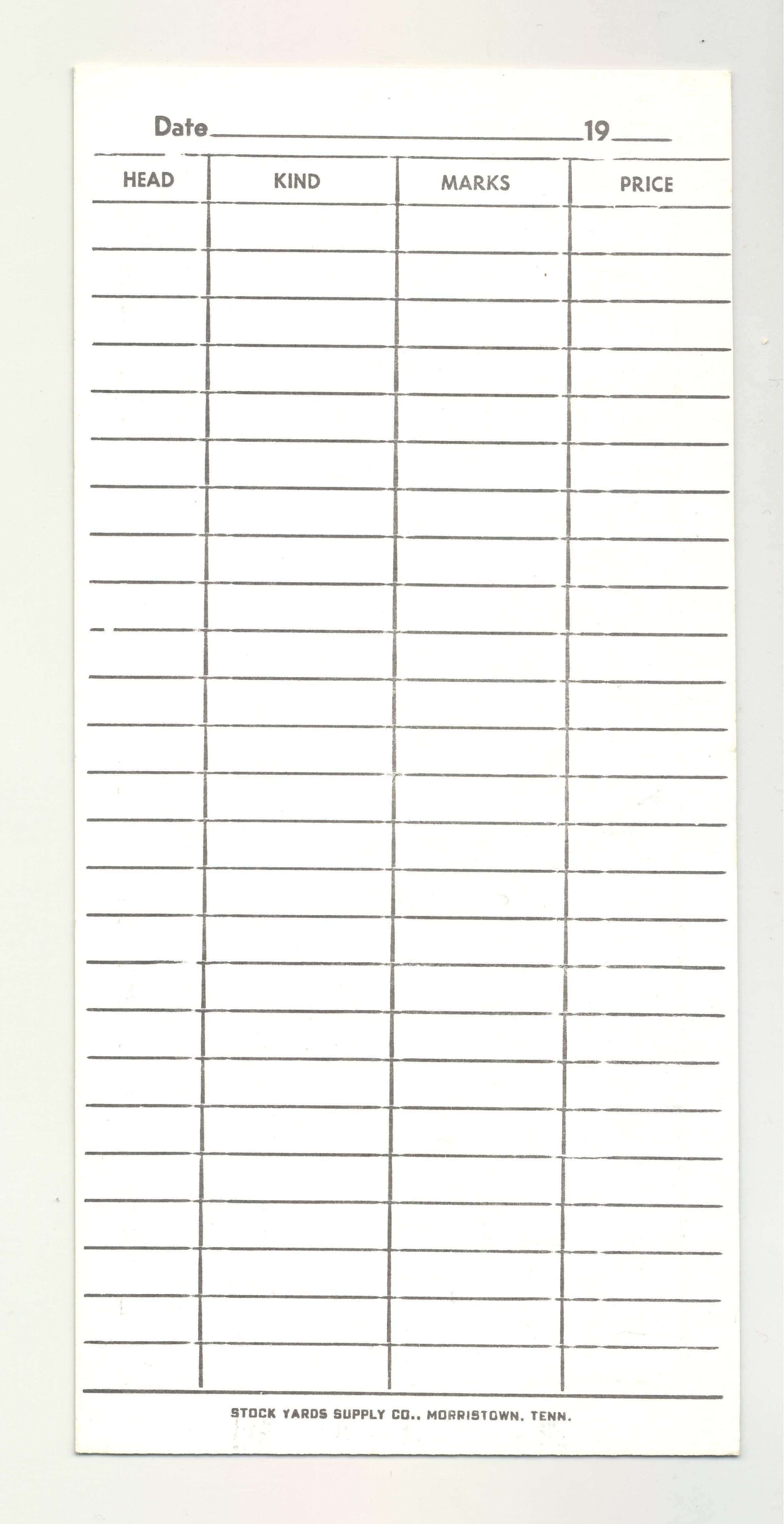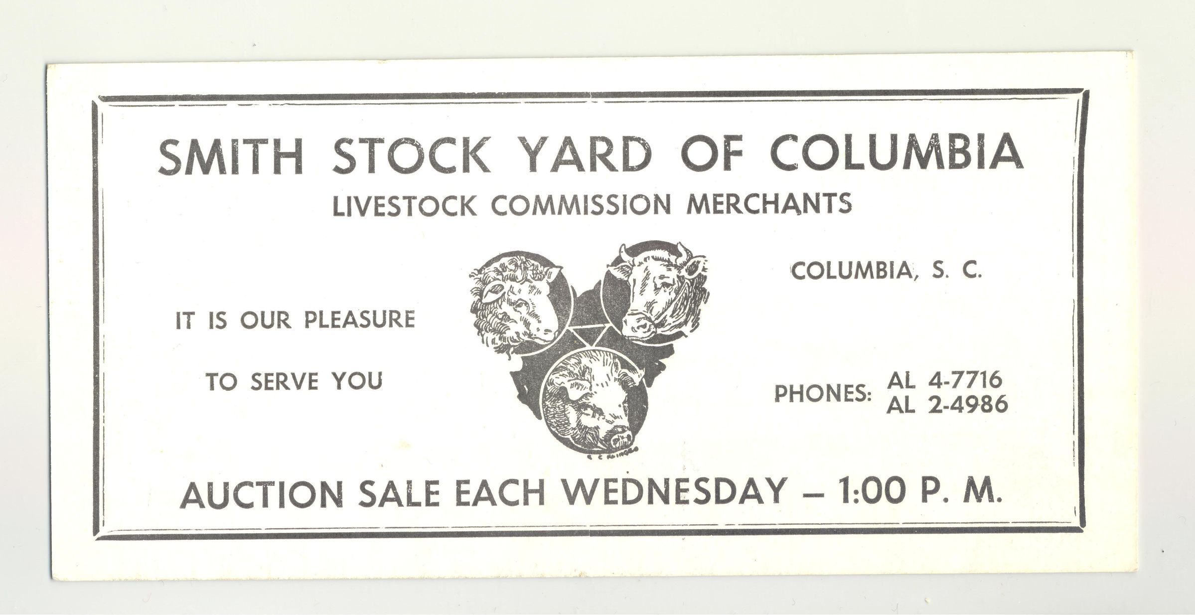 ADV BID RECORD, LIVESTOCK, SC, EA. 1900, "SMITH STOCK YARD OF COLUMBIA" STOCK YARDS SUPPLY CO. MORRISTOWN, TNCreated By