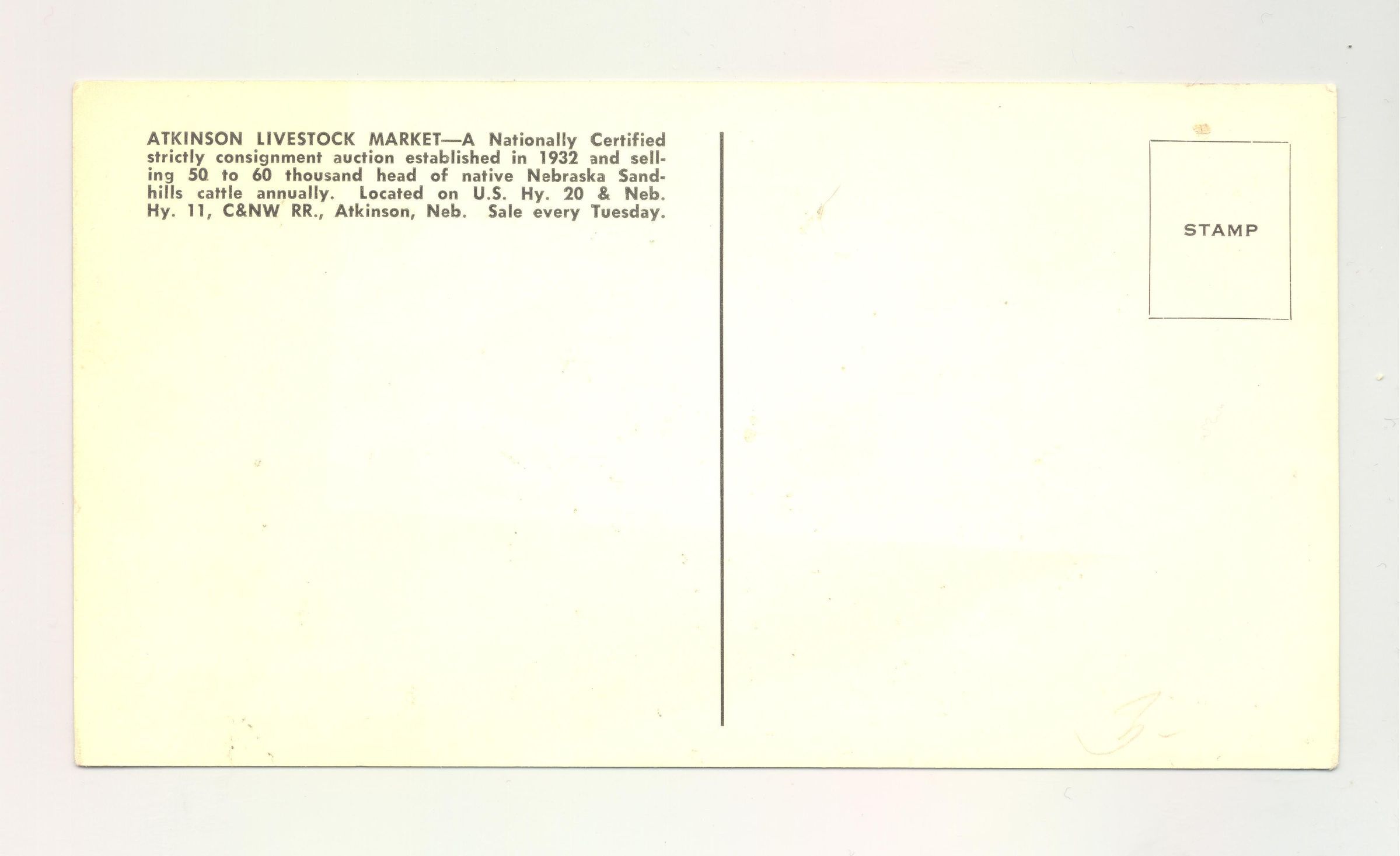 PSTCD, CATTLE, NE. "NEBRASKA SANDHILLS FOREMOST CATTLE AUCTION", "THE OLD RELIABLE" ATKINSON LIVESTOCK MARKET. EST. 1932Created By