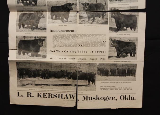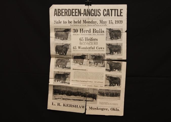 MAILER, POSTER, 1939, CATTLE, OK. ABERDEEN-ANGUS CATTLE. L.R. KERSHAW, MUSKOGEE, OKLA.