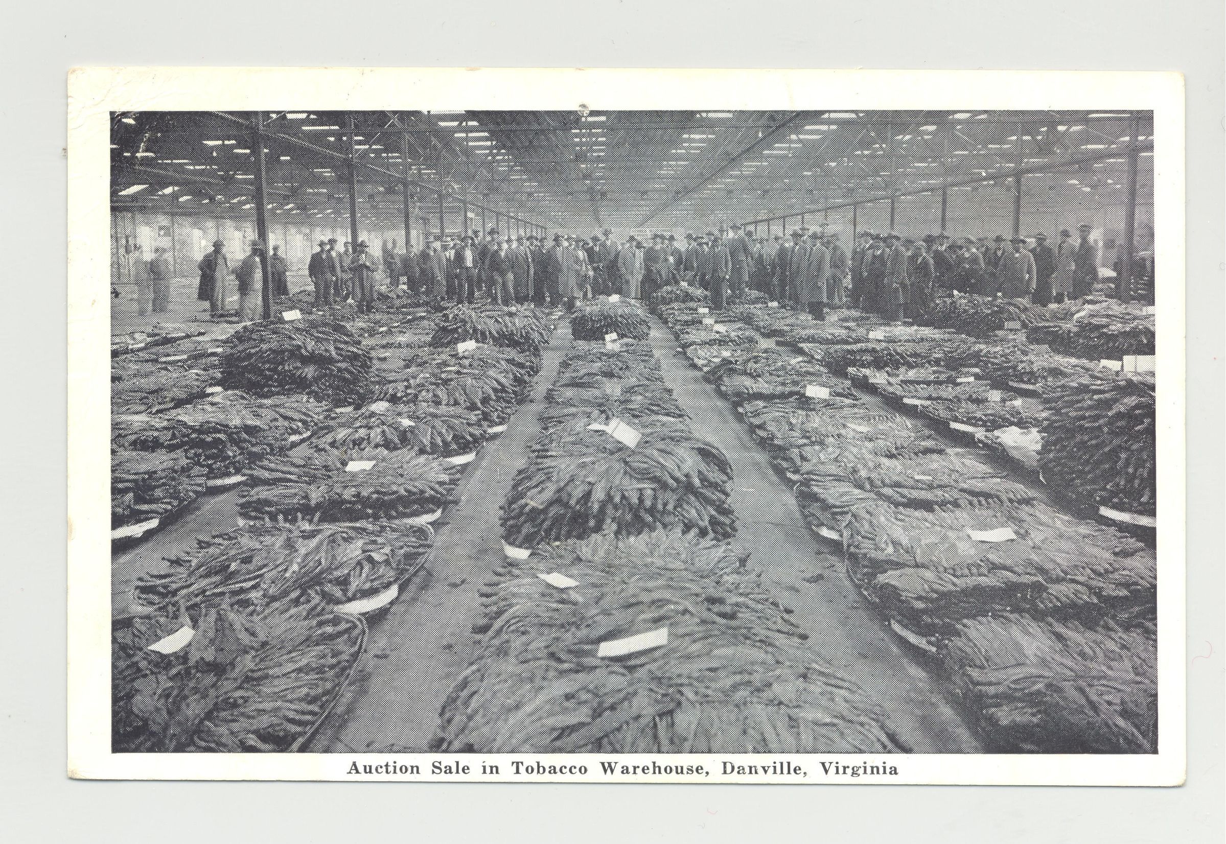 PSTCD, TOBACCO, VA. NO DATE, "AUCTION SALE IN TOBACCO WAREHOUSE, DANVILLE, VIRGINIA" PHOTO OF WAREHOUSE AUCTION.Created By