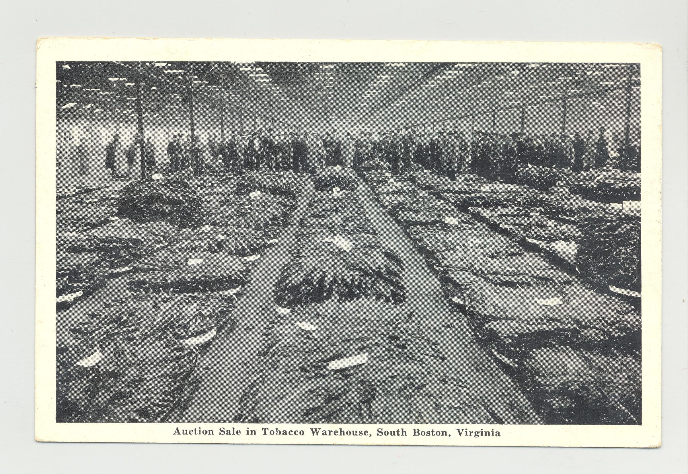 PSTCD, TOBACCO, VA. NO DATE, "AUCTION SALE IN TOBACCO WAREHOUSE, DANVILLE, VIRGINIA" PHOTO OF WAREHOUSE AUCTION.Created By