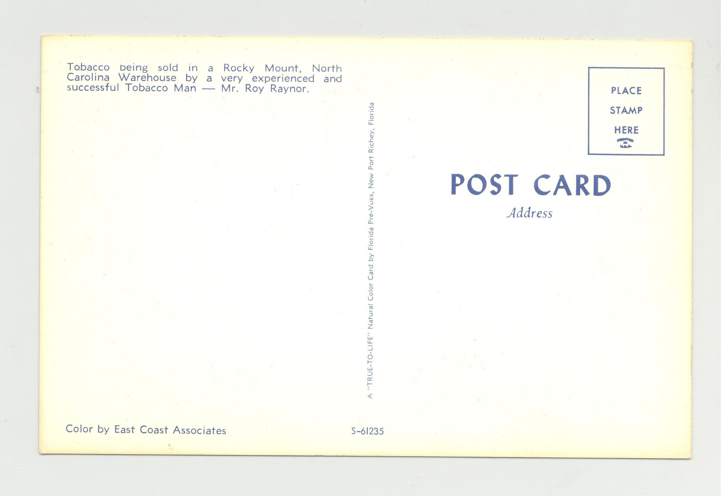 PSTCD, TOBACCO, NC. "TOBACCO BEING SOLD IN A ROCKY MOUNT, NC WAREHOUSE BY A VERY EXPERIENCED AND SUCCESSFUL TOBACCO MAN - MR. ROY RAYNOR. "Created By