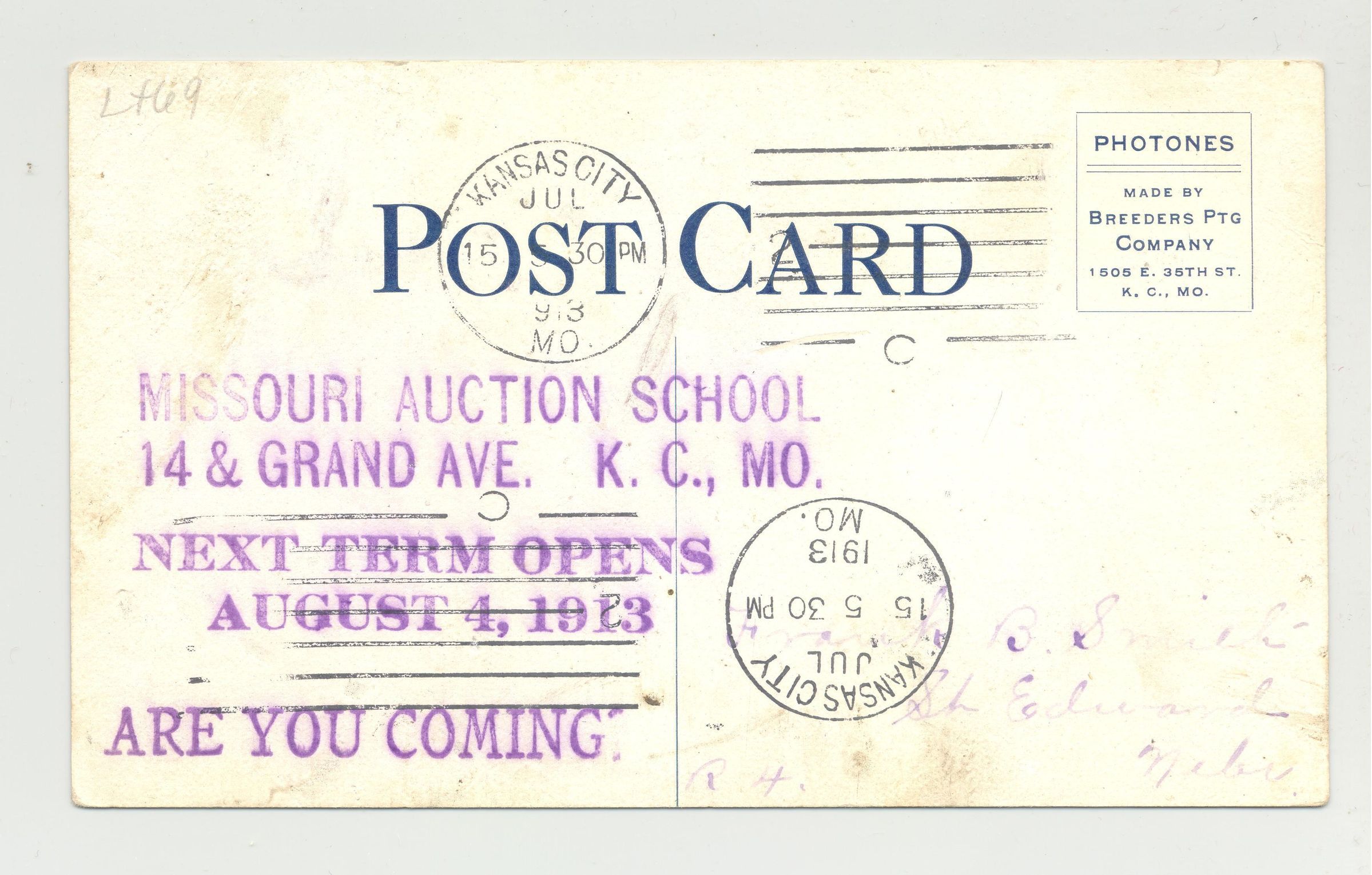 PSTCD, 1913, AUCTION SCHOOL, MO. "MO AUCTION SCHOOL STUDENTS SALES AUG TERM TRENTON, MO. 1911.