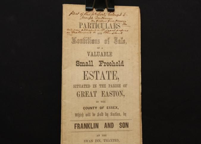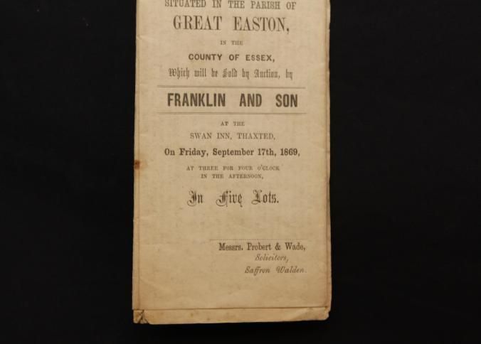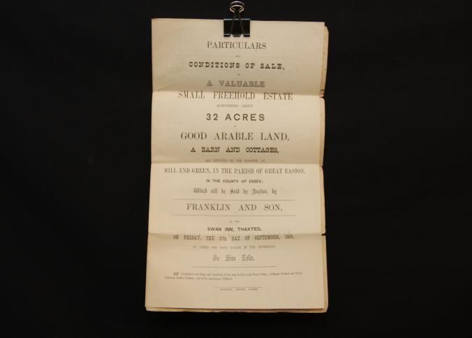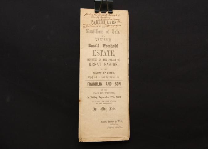 PARTICULARS, ESSEX ESTATE, 1869, ENGLAND. FRANKLIN & SON, AUCTS. INCL PLAN OF THE ESTATE, IN PARISH OF GREAT EASTON, ESSEX COUNTY.Created By