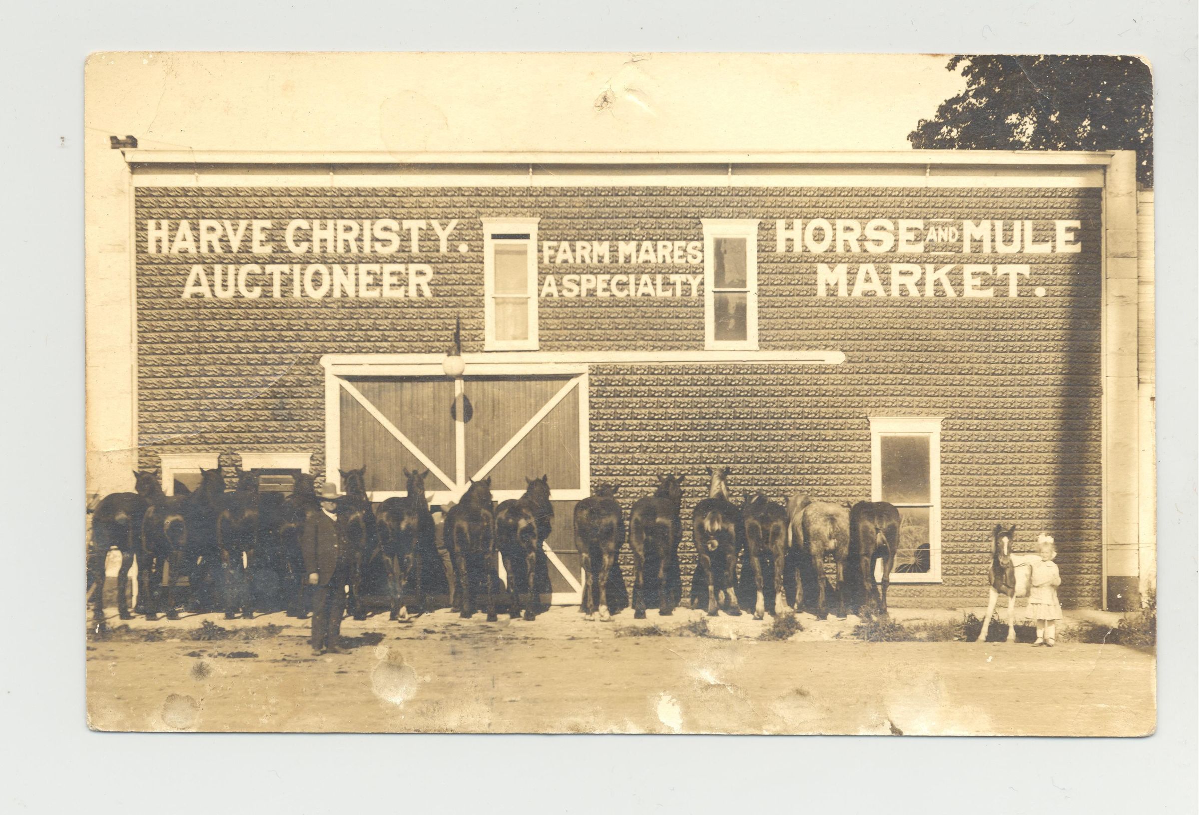 PSTCD, HARVE CHRISTY, AUCTIONEER, FARM MARES A SPECIALTY, HORSE & MULE MARKET. PHOTO OF BACKSIDES OF HORSES.Created By