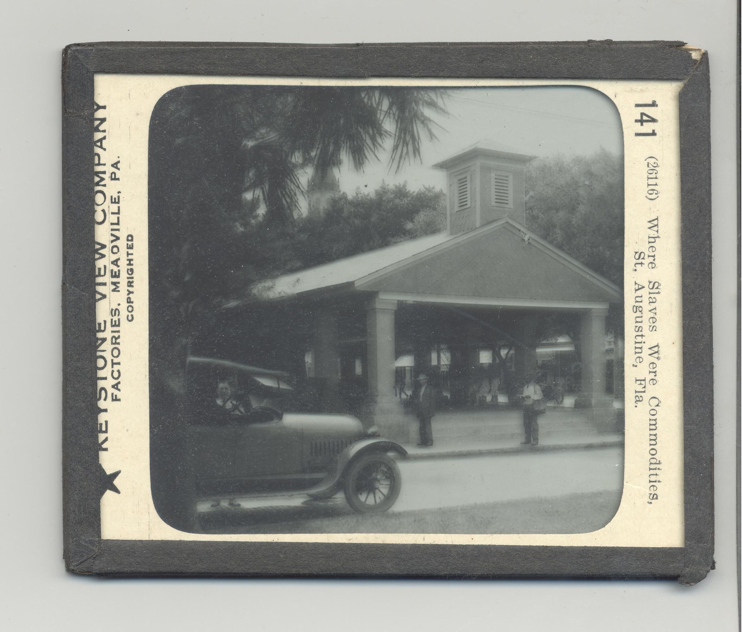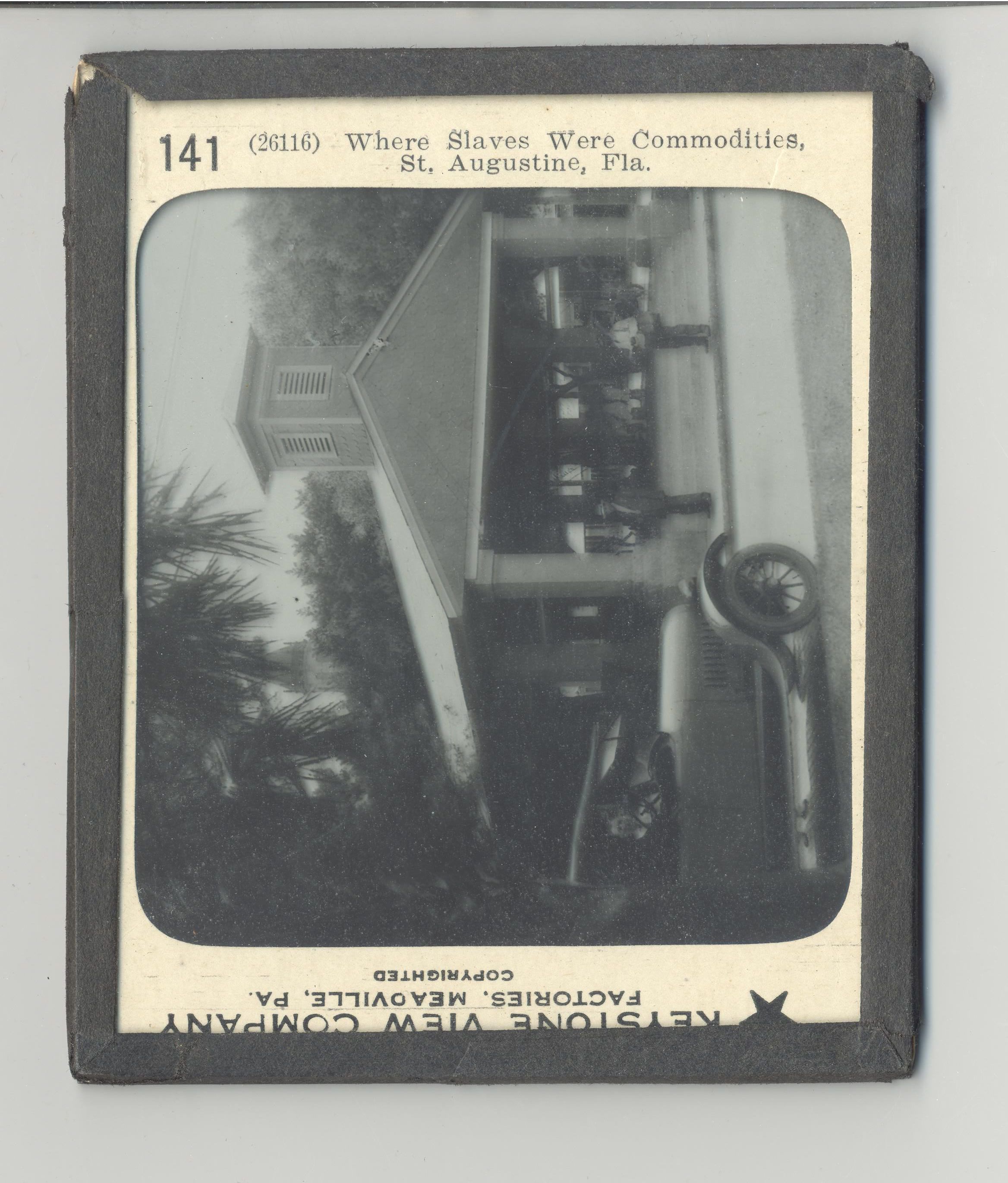 PHOTO, GLASS, FL. NO DATE. "WHERE SLAVES WERE COMMODITIES, ST AUGUSTINE, FLA" KEYSTONE VIEW CO. FACTORIES, MEAOVILLE, PA. COPYRIGHTED. 4" X 3 1/4"Created By
