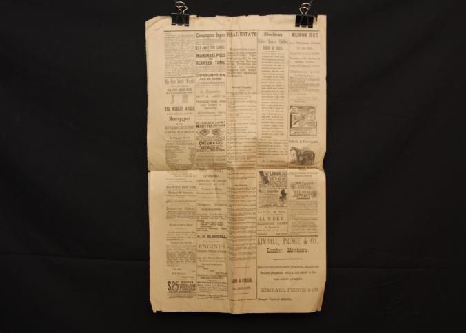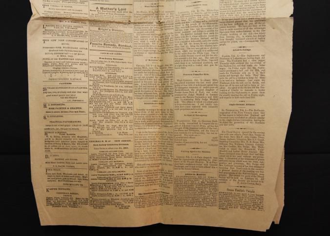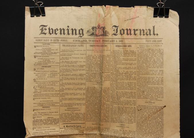 NEWSPAPER, 1889, NJ. "EVENING JOURNAL" 13" X 20"