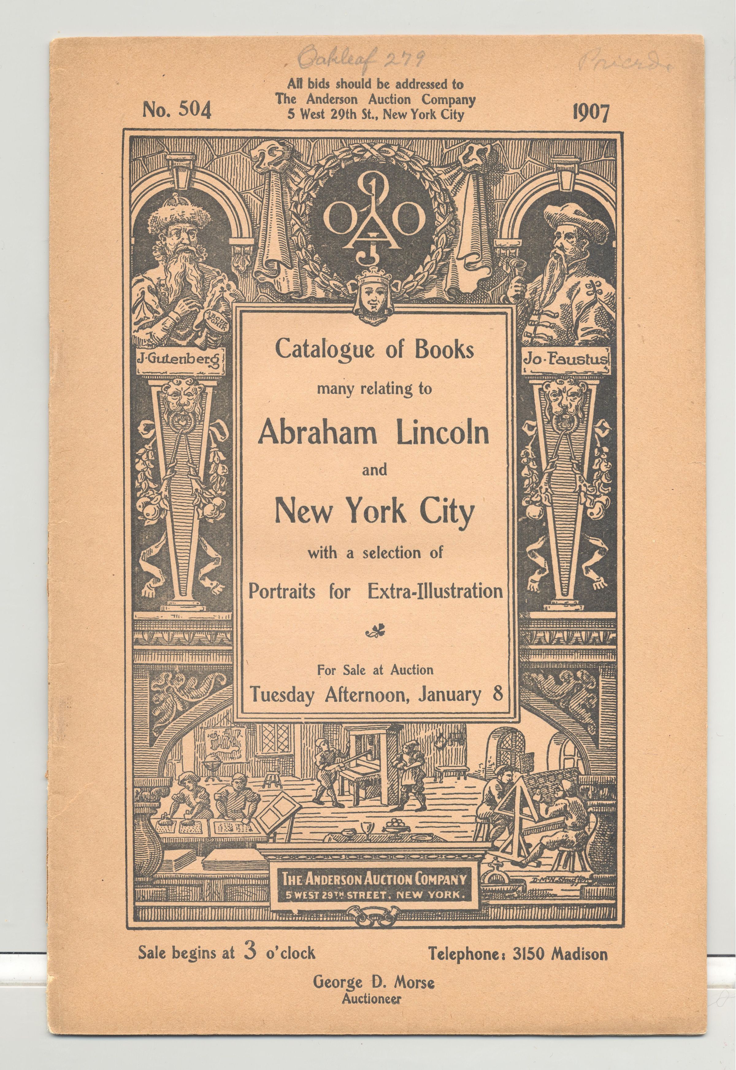 CAT, BOOKS, MANY RELATING TO ABRAHAM LINCOLN. 1907, NY. GEORGE MORSE, AUCT. THE ANDERSON AUCTION CO. 20 PP, 6" X 9"Created By